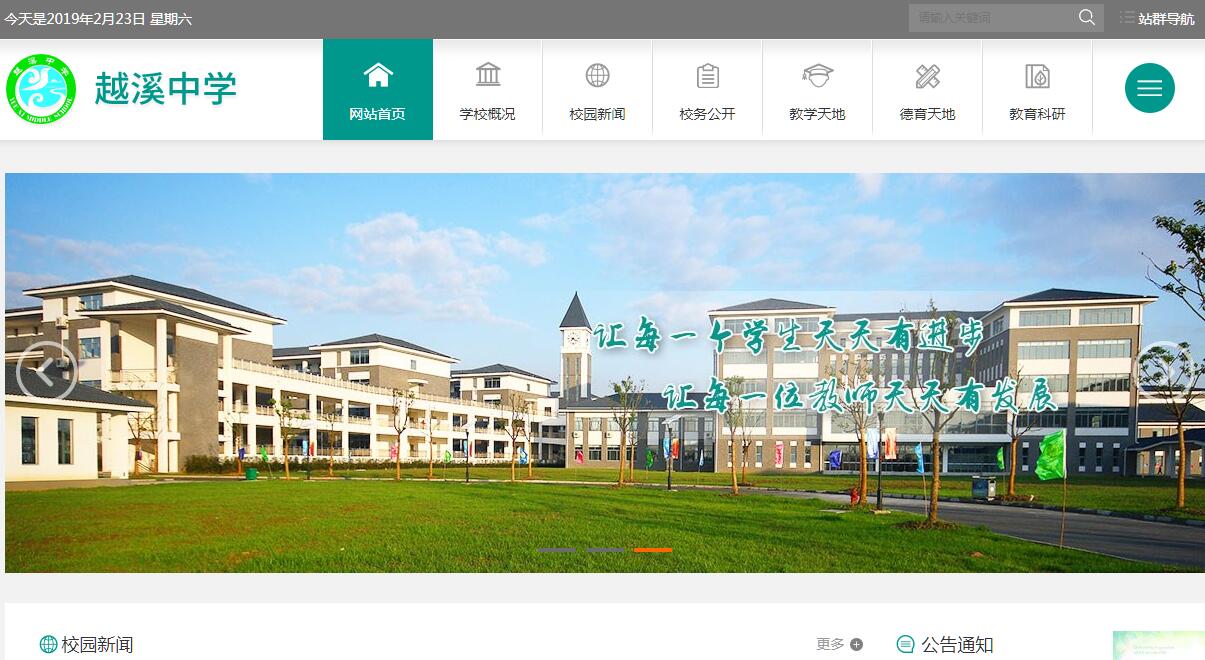 吴中区越溪中学创办于1958年,于2008年易地新建。坐落在苏州吴中经济技术开发区,北临苏州国际教育园、石湖风景区,南依东太湖。在吴中区教育局、吴中经济技术开发区和越溪街道办事处党工委的关心支持下,越溪中学校园环境不断优化,教育教学设施不断完善。近十多年来,教育教学质量始终保持优良,先后被评为全国青少年校园足球特色学校、江苏省模范教工之家、江苏省健康促进学校、江苏省平安学校、苏州市教育现代化初中、 苏州市德育先进学校、苏州市校务公开先进学校、苏州市平安学校、苏州市依法治校先进学校、苏州市工会工作先进单位、苏州市装备管理先进学校、苏州市中小学家庭教育课程项目学校、吴中区平安学校、吴中区模范职工之家、吴中区规范管理先进学校、吴中区家校共育项目优秀学校等荣誉称号。学校占地面积86667㎡,校舍建筑面积42723㎡,绿化面积占46%,校园布局合理,环境优美,教育设施设备日趋完备。学校现有教学班18个,学生780多人,教职工71人。目前我校拥有400m操场1片、篮球场3片,网球场1片,物理实验室1个、化学实验室1个、生物实验室1个,还配备准备室、仪器室等;图书室1个,教师、学生阅览室各1个,音乐室、美术室各1个;中心机房1个,录播教室1个,电脑房3个,电视台1个,学校建有网站,建立了校园广播系统。近两年学校向越溪街道政府、开发区事业局汇报,完善、增添教学设施设备,35个多媒体教室更新换代和未来教室升级更新;为每位教师配备了新的电脑,现共有电脑275台,极大地提高了教师的教学效率和学生的学习效率。图书馆、体育馆的装修、布置也正在紧锣密鼓的筹划中。学校注重师资队伍建设,经常组织教师参观学习,鼓励教师培训进修,实行"师徒结对"制,促使青年教师努力朝着"一年成为合格教师,三年成为骨干教师,五年争做知名教师"的目标奋斗。在专任教师中,中高级教师职称占76.1%,本科以上学历的教师有68人。学校现已拥有一支稳定的师德高尚、踏实教学、乐于奉献的优秀教师队伍。近年来,涌现出一批区学科带头人(8人),区骨干教师(19人),一大批中青年教师在各级各类的学科竞赛、学科辅导中获奖。学校本着"培养人、发展人、完善人"的办学思路,确立"全面培养学生素质,为学生终身发展奠基"的目标,办优质示范初中,兴人民满意教育。坚持德育为首,狠抓教育质量,努力推进新课程改革,取得了较好的办学效果。学生在各级各类竞赛中表现突出,获奖率高。学校努力探索办学特色:根植吴越文化,提升学校文化品位。吴越文化的深厚文化底蕴是培养新世纪人才、努力提高文化品位的丰富教育资源。学校自主开发校本课程,自编教材,成立各种课外兴趣小组,以请进来,走出去的形式,增长学生知识,开阔学生眼界。学生的书画作品频频见于书报,在规范汉字书写大赛、古诗文阅读比赛、作文竞赛等竞赛中屡屡获奖。学校大力倡导"务实科研",努力贯彻"以研导行"策略,教科研氛围日益浓厚。越中教师认真教育教学的同时,积极撰写论文,积极参加征文活动,积极向教育权威刊物投稿。据不完全统计,每年在各级各类刊物上发表或获奖的教科研论文有几十篇。学校每年申报区、市级课题,“十二五”市级课题《城市化背景下班主任校本培训研究》已结题,获得了专家同行们的肯定。“十三五”市级课题《新形势下家长体验式校本课程开发与实施的实践研究》正在积极申报中。几十年来,越中人一直在打造着自己的品牌。光荣的历史和传统激励着越中人在新时代、新形势下,努力创新突破,力争在教育的百花园中继续保持着良好的发展势头,开放出更加绚丽夺目的花朵。