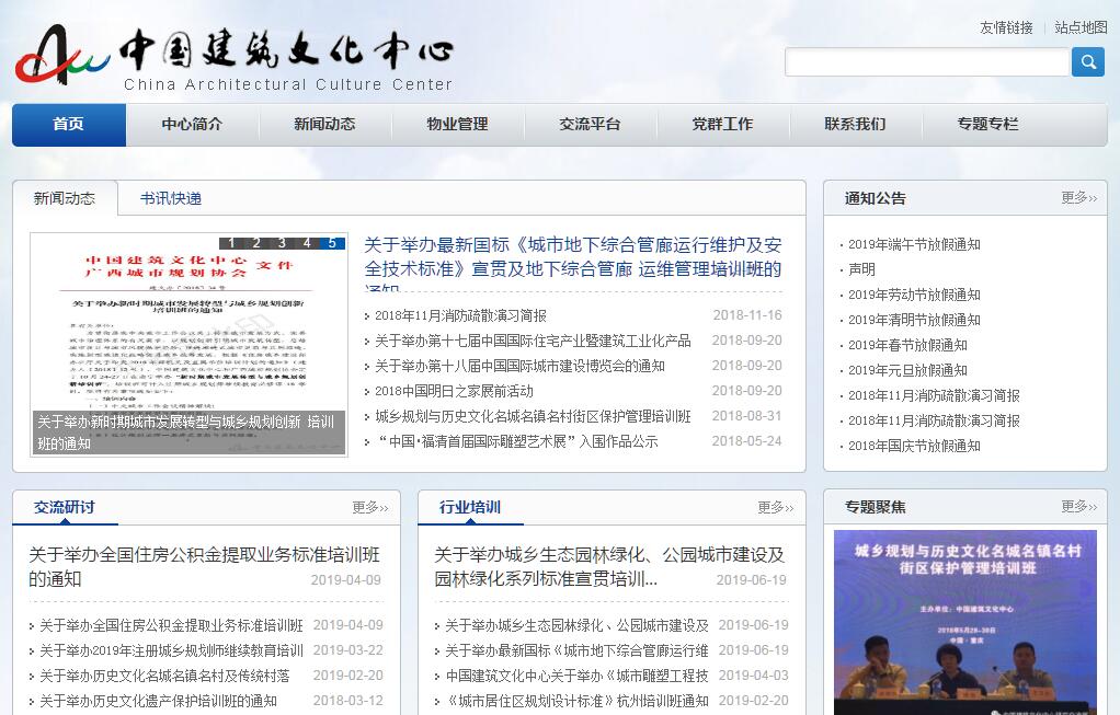 | 网站简介: 中国建筑文化中心是住房和城乡建设部直属科研事业单位,1997年经中编办批准成立。中国建筑文化中心始终以弘扬、传播中国建筑文化为己任,以竭诚服务建设行业为目标,作为国家政府机构社会服务职能的深化和延伸,整合行业多方资源,拓展业务领域,将文化产业与建设行业有机结合,创造性地构建起了科学的建筑文化产业运行模式。到目前为止,中国建筑文化中心已经形成了国际交流、会议研讨、行业培训、技术咨询、展览展示、模型制作、城市雕塑建设指导、建筑图书阅览与展示等多方位传播建筑文化、服务建设行业的能力。 |