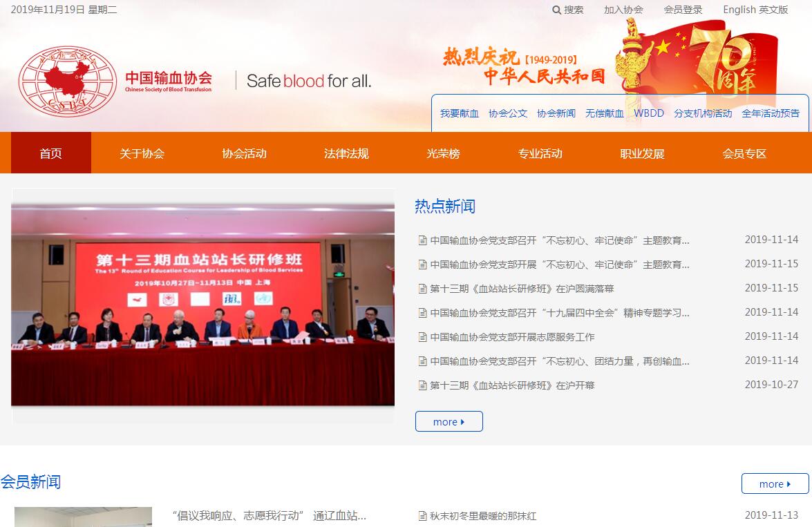 中国输血协会是由从事输血医学的事业、企业单位和相关的专业技术与管理工作者自愿结成的全国性、行业性、非营利性社会组织。本团体接受社会团体登记管理机关中华人民共和国民政部和国家卫生健康委员会的监督管理和业务指导。中国输血协会成立于1988年10月,本团体的宗旨是团结广大输血医学工作者,遵守国家宪法、法律和法规,贯彻国家卫生工作方针政策、维护人民健康。遵守社会道德风尚,倡导友爱、互助、无偿献血的行为,弘扬团结、协作、民主、求实、创新精神,推动我国输血医学事业的发展。三十多年来,我国输血界和协会的众多专家、学者、领导、前辈,用他们的学识、智慧和能力,引领着行业和协会的发展;数十万计的从业人员、协会会员单位的职工,用他们的辛勤、奉献和执着,日复一日,年复一年,服务献血者、病患者,服务社会。中国输血协会现有单位会员近530个;下设一个秘书处,3个协会内设机构;24个分支机构,其中17个专业委员会、7个工作委员会。协会自成立以来已召开7届全国会员代表大会,9届输血大会。举办了十二期血站站长研修班和大量的国家级继续教育项目、专项培训班、研讨会。中国输血协会通过开展调查研究、配合部委落实行业新规、参与制定相关法规,积极发挥桥梁纽带、参谋助手作用;利用协会多种媒介形式大力宣传无偿献血,构建行业文化、科技新平台;充分发挥各工作委员会作用,通过广泛开展学术交流与继续教育培训活动,扎实推动学科建设工作,提升人才队伍整体素质;不断完善规范化管理、积极发挥行业推动作用,认真履行职能、加强自身建设,竭力为会员提供服务;为促进我国输血事业健康发展和学术繁荣等做出了积极的贡献。中国输血协会现任第七届理事会于2016年11月11日成立,选举产生理事182名,其中常务理事61名;产生了监事会,监事长1名,副监事长1名,监事2名;协会负责人11名。协会第七届理事会理事长朱永明在讲话中强调,无论在何时,无论面对什么任务,做好协会工作要牢记三个重点:第一要依靠会员,服务会员;第二要适应形势,转变角色;第三要民主监督,自律自强。并号召输血界同仁们,互相勉励、携手共进,共同承担历史赋予的重任,共同描绘推进健康中国建设的历史蓝图。