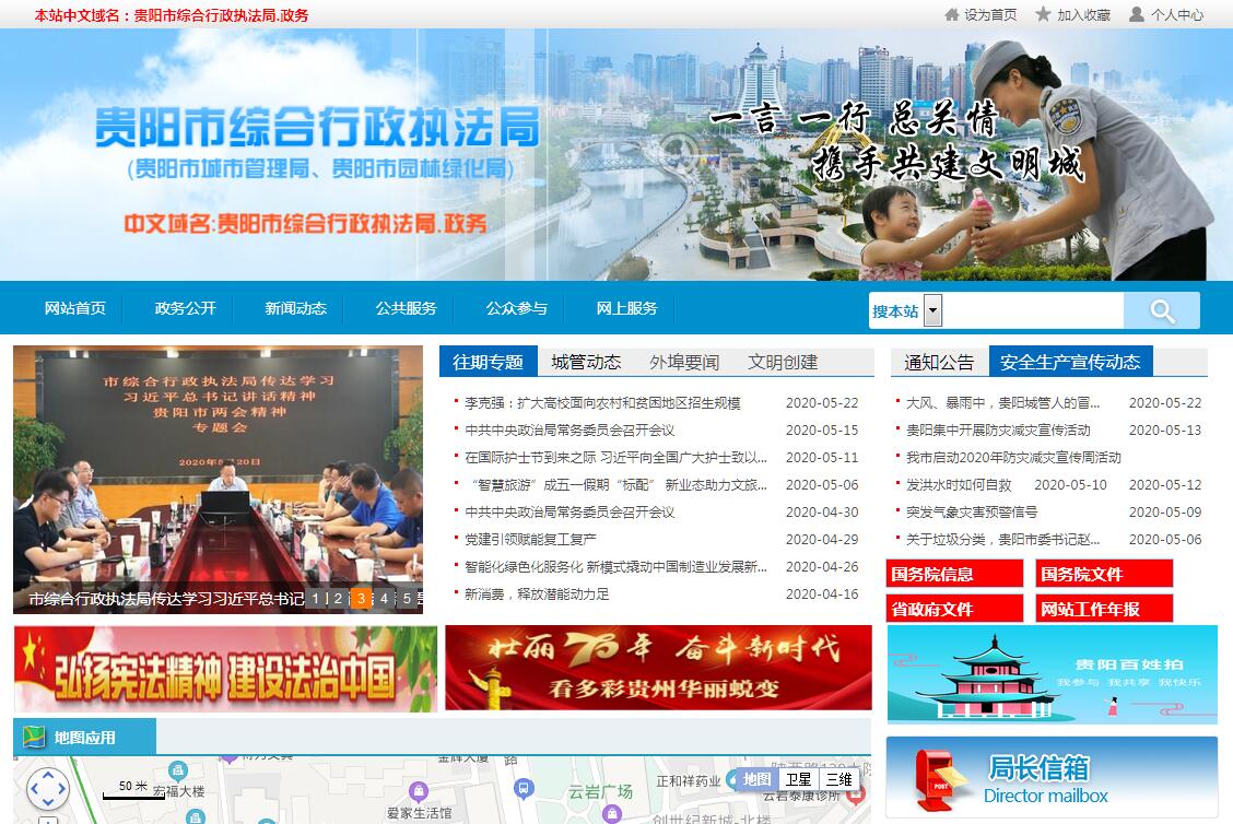 贵阳市综合行政执法局主要职责:(一)根据国家和省、市关于城市管理、市容环境卫生、市政设施、市城市管理信息中心及城市综合执法等方面的法律法规和方针、政策,结合本市情况,草拟相应的地方性法规、规章和政策,并组织实施和监督检查;负责本部门制发的规范性文件的报备工作。(二)负责机关和所属单位的安全生产管理和城区防汛工作。(三)负责市政年度维护计划的编制、会审、申报工作,并组织实施和监督执行;负责对市政设施的维护和改扩建工程的组织和管理工作;指导和管理城市污水处理工作;负责城区临时挖掘(占用)城市道路施工的审批管理工作。(四)根据国务院法制办公室《关于在贵州省贵阳市开展相对集中行政处罚权试点工作的复函》(国法函〔2001〕134号)和《省人民政府关于在贵阳市开展相对集中行政处罚权试点工作的批复》(黔府函〔2001〕362号)规定,组织实施并监督行使市容环境卫生、规划、市政等方面法律、法规、规章规定的部分行政处罚权;负责城市综合执法队伍的建设及管理,制定有关规章制度并指导实施,对执行情况进行检查和考核;履行省、市人民政府规定的其他职责。(五)研究拟订市容环境卫生管理规划和年度工作计划,并组织实施和检查;按照统一领导、分级负责的原则,对全市市容环境卫生工作指导、监督、检查。(六)负责制订城市管理信息化相关规定和技术标准;制订城市管理信息化建设工作的总体目标、中长期规划、年度计划;负责机关和所属单位信息化建设项目的组织实施和监督管理;负责全市城市管理政府网站等公众服务信息平台的建设、维护和管理;负责城市管理信息技术的研究、应用与管理工作。(七)组织编制所属单位的年度资金使用计划,负责城管系统各类统计报表的编制汇总上报工作。(八)承办市委、市人民政府和上级业务部门交办的其他事项。