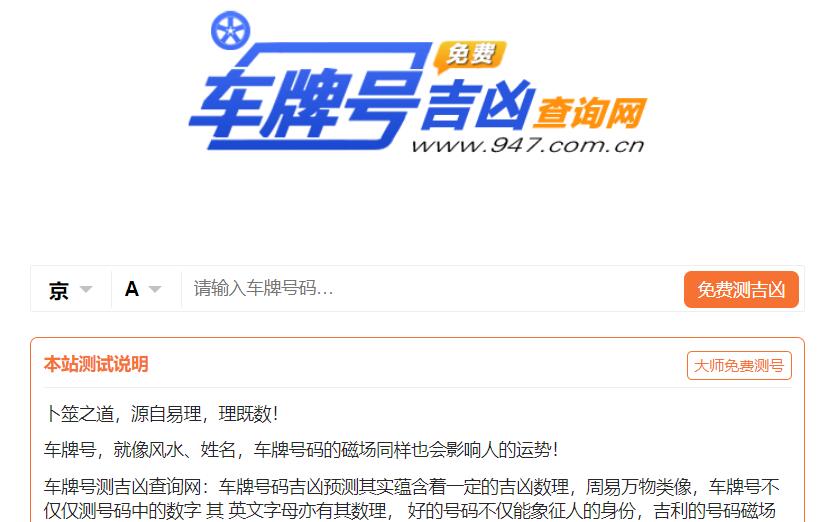 | 网站名称: | 车牌号吉凶查询网 | ||