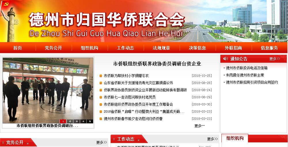 德州市归国华侨联合会(简称市侨联)是中国共产党领导的由全市归侨、侨眷组成的人民团体,是党和政府联系广大归侨、侨眷和海外侨胞的桥梁和纽带。市侨联是省侨联市级地方组织和团体会员,在市委领导和省侨联指导下,依据《中华全国归国华侨联合会章程》开展工作。其主要职责是:(一)贯彻执行党和政府的侨务工作方针、政策和法规,执行市归侨、侨眷代表大会、委员会的决议和决定,并监督、检查贯彻落实情况。(二)加强归侨、侨眷的法制教育和思想道德教育,为国家的改革发展稳定服务;依法维护归侨、侨眷的合法权益和海外侨胞在国内的正当权益,为他们提供法律咨询与服务;鼓励、教育、引导归侨、侨眷发扬爱国主义精神和社会主义道德风尚,积极参加社会主义物质文明建设和精神文明建设。(三)指导下级侨联的工作;联系团体会员,并给予业务指导。(四)引导、协助海外侨胞与德州进行经济合作和科技交流;为归侨、侨眷兴办企事业和海外侨胞来德州投资服务,为归侨、侨眷和海外侨胞在德州兴办文教卫生和其他公益事业服务。(五)配合有关主管部门做好侨界人大代表、政协委员人选的协商、推荐和人事安排工作,为他们履行政治协商、民主监督职能提供服务。(六)密切联系海外侨胞及社团,了解侨情民意,沟通渠道,化解矛盾;反映归侨、侨眷和海外侨胞的意见和要求,参与有关法规和侨务政策的研究拟定工作。配合有关部门进一步做好侨务对台工作。(七)研究新世纪侨联面临的新形势、新任务、新特点,加强侨联组织建设和干部队伍建设,加强宣传工作。(八)完成市委、市政府和省侨联交办的其他事项。