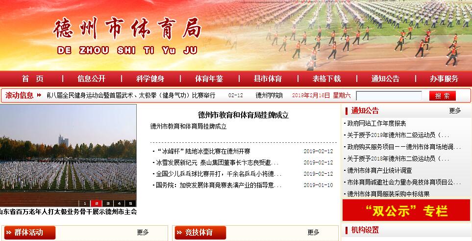 德州市体育局主要职责:(一)拟订全市体育事业发展规划和政策并组织实施;负责推动多元化体育服务体系建设,推进体育公共服务和体育体制改革。(二)统筹规划全市群众体育发展,推行全民健身计划;组织实施国家体育锻炼标准,推动国民体质监测和社会体育指导工作队伍制度建设;指导公共体育设施建设,负责对公共体育设施的监督管理。(三)统筹规划全市竞技体育发展,确定体育运动项目设置和布局;指导协调体育训练和体育竞赛,指导运动队伍建设;组织参加和承办市内外体育竞赛,制定全市性体育竞赛制度、计划,管理、指导全市体育竞赛工作。(四)统筹规划全市青少年体育发展,推进青少年体育工作。(五)组织和指导全市体育科研、教育和宣传工作,培训体育专业人才;组织、协调、监督体育运动中的反兴奋剂工作。(六)指导全市体育产业发展和经营活动,归口管理体育市场,规范体育服务管理,会同有关部门负责体育彩票发行的管理工作。(七)开展对外体育合作与交流,指导并归口管理民间体育和对外体育交往活动。(八)指导和检查各县(市、区)的体育工作;负责市级体育社团资格审查,负责各类体育学校、体育项目俱乐部资格审查和业务指导工作。(九)承办市委、市政府交办的其他事项。