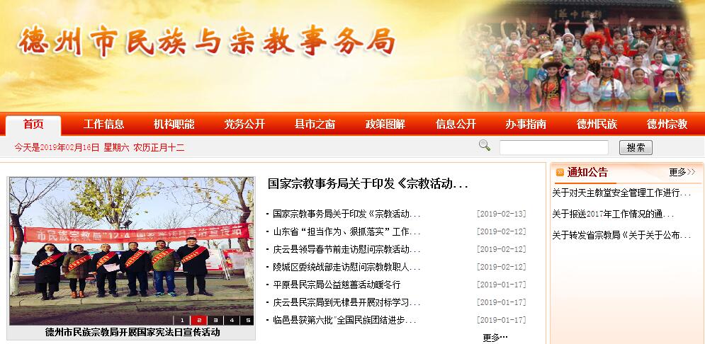 德州市民族与宗教事务局,是市政府主管民族宗教工作的职能部门,内设三个科室:秘书科(挂党建工作办公室牌子)、民族科、宗教科(挂审批服务科牌子)。其主要职责是:(一)贯彻执行党和国家、省关于民族宗教工作的方针政策,负责监督检查民族宗教政策和法律、法规的执行情况:组织开展民族宗教理论、政策和民族宗教工作重大问题的调查研究并提出建议;负责开展民族宗教政策和法律、法规的宣传教育工作。(二)负责协调推动有关部门履行民族宗教工作相关职责,促进民族宗教政策在经济发展和社会事业有关领域的落实。(三)参与拟订少数民族事业发展规划。提出少数民族经济发展的特殊政策和措施建议,会同有关部门做好少数民族扶贫事宜;参与组织协调对少数民族经济的支援;会同有关部门共同促进少数民族各项社会事业的发展并对民族特需用品定点生产企业进行监督管理。(四)依法保障少数民族的合法权益,巩固和发展社会主义民族关系。尊重少数民族风俗习惯,维护民族团结;配合有关部门处理涉及民族宗教方面的重大事件,维护社会稳定;负责民族团结进步宣传工作。(五)负责联系少数民族干部和少数民族代表人士,协助有关部门做好少数民族干部的培养、教育和使用工作;负责变更民族成份的审核事项。(六)依法保护公民宗教信仰自由和正常的宗教活动,维护宗教界的合法权益,促进宗教关系和谐。(七)依法履行管理职能,会同有关部门防范利用宗教进行的非法、违法活动,抵御境外利用宗教进行的渗透活动。(八)指导宗教团体加强自身建设、依法依章开展活动,办理宗教团体需由政府解决或协调的有关事务。(九)联系宗教界上层人士,推动宗教界进行爱国主义、社会主义及拥护祖国统一和民族团结的自我教育,发挥宗教界人士和信教群众在促进经济社会发展中的积极作用。(十)负责处理民族宗教工作领域有关涉外事宜,指导民族宗教界开展对外和对港、澳、台地区的友好交往活动,参与涉及民族宗教对外宣传工作。(十一)参与少数民族专项资金的管理和专项贷款项目的论证与推进;参与宗教工作方面专项资金的管理。(十二)建立和完善少数民族事业发展综合评价监测体系;推进民族宗教事务管理信息化建设。(十三)承办市委、市政府交办的其他事项。
