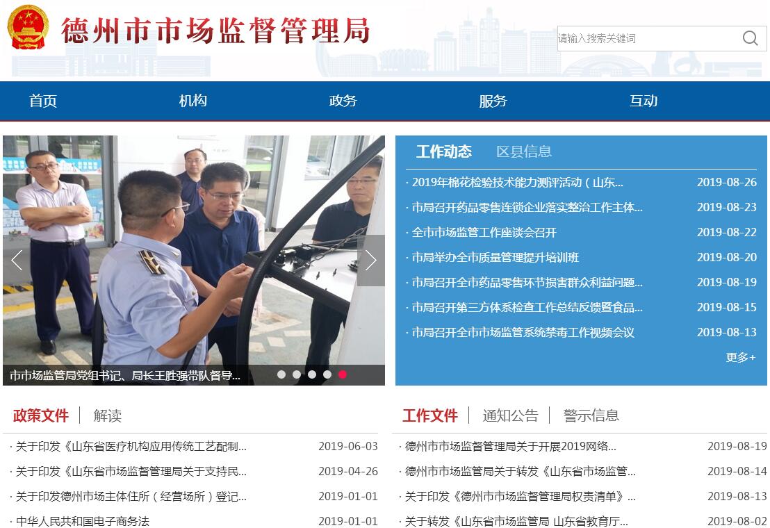 根据中共山东省委、山东省人民政府批准的《德州市机构改革方案》和《中共德州市委、德州市人民政府关于德州市市级机构改革的实施意见》,制定本规定。德州市市场监督管理局(以下简称市市场监管局)是市政府工作部门,为正处级。市市场监管局贯彻党中央关于市场监督管理(以下所称市场监督管理包含知识产权监督管理和药品监督管理)工作的方针政策和决策部署,落实省委工作要求和市委工作安排,在履行职责过程中坚持和加强党对市场监督管理工作的集中统一领导。其主要职责是:(一)负责全市市场综合监督管理。贯彻执行市场监督管理方面法律法规和方针政策,起草相关地方性法规、政府规章草案。落实质量强市战略、食品安全战略、标准化战略和知识产权战略,拟订全市有关战略、规划、政策并组织实施。规范和维护市场秩序,营造诚实守信、公平竞争的市场环境。(二)负责指导全市市场主体统一登记注册。组织指导各类企业、农民专业合作社和从事经营活动的单位、个体工商户以及外国(地区)企业常驻代表机构等市场主体的登记注册工作。分析并依法发布全市市场主体登记注册信息。负责指导市场监督管理领域的行政许可、备案,承担审批后的事中事后监管职责。建立全市市场主体信息公示和共享机制,依法公示和共享有关信息,加强信用监管,推动市场主体信用体系建设。(三)负责全市市场秩序的监督管理。依法监督管理市场交易、网络商品交易以及有关服务的行为。组织查处价格收费违法违规、不正当竞争、违法直销、传销、侵犯知识产权和制售假冒伪劣行为,指导县(市、区)有关工作。指导广告业发展,监督管理广告活动。指导查处无照生产经营和相关无证生产经营行为。指导全市消费环境建设,指导德州市消费者协会开展消费维权工作。承担市打击侵犯知识产权和制售假冒伪劣商品工作领导小组日常工作。配合有关部门做好优化营商环境有关工作。(四)负责全市市场监管综合执法工作。组织查处跨区域和重大违法案件,集中行使法律法规规定的执法职责。指导县(市、区)市场监管综合执法和执法队伍建设等工作。规范市场监管行政执法行为,推动实行统一的市场监管。(五)负责组织、指导、协调全市反垄断执法相关工作。协助省局查处垄断案件。统筹推进竞争政策实施,组织指导公平竞争审查制度实施。(六)负责全市宏观质量管理。组织实施质量发展的制度措施,推进国家质量基础设施建设与应用。会同有关部门组织实施重大工程设备质量监理制度,组织重大质量事故调查,统一实施缺陷产品召回制度,监督管理产品防伪工作。承担质量强市及品牌战略推进工作领导小组日常工作。(七)负责全市产品质量安全监督管理。组织实施产品质量安全风险监控和监督抽查。组织实施质量分级制度、质量安全追溯制度。负责纤维质量监督工作。(八)负责全市特种设备安全监督管理。综合管理特种设备安全监察、监督工作,监督检查高耗能特种设备节能标准和锅炉环境保护标准的执行情况。(九)负责全市食品安全监督管理综合协调。拟订全市食品安全重大政策并组织实施。负责食品安全应急体系建设,组织指导重大食品安全事件应急处置和调查处理工作。组织实施食品安全重要信息直报制度。承担市食品安全委员会日常工作。(十)负责全市食品安全监督管理。建立覆盖食品生产、流通、餐饮服务全过程的监督检查制度和隐患排查治理机制并组织实施,防范区域性、系统性食品安全风险。推动建立落实食品生产经营者主体责任的机制,落实国家食品安全全程追溯协作机制,指导企业建立食品安全追溯体系。组织开展食品安全监督抽检、核查处置和风险交流工作,承担风险预警相关工作。组织实施特殊食品监督管理。(十一)负责组织指导全市药品、医疗器械和化妆品监督管理。监督实施国家药典等药品、医疗器械、化妆品标准和分类管理制度,配合实施国家基本药物制度。监督实施药品、医疗器械经营质量管理规范,监督实施化妆品经营、使用卫生标准和技术规范。组织实施药品零售、医疗器械和化妆品经营、使用环节的监督检查。组织开展药品不良反应、医疗器械不良事件和化妆品不良反应的监测、评价和处置工作,组织开展质量抽查检验工作,依法承担药品、医疗器械和化妆品安全应急管理工作。(十二)负责统一管理全市计量工作。推行法定计量单位和国家计量制度,管理计量器具,组织量值传递和比对工作。规范、监督商品量和市场计量行为。(十三)负责统一管理全市标准化工作。推动实施国家标准和行业标准,组织制定和发布地方标准,开展标准实施的监督评估工作。组织参与制定国际标准、国家标准、行业标准。依法承担地方标准立项、编号和发布等工作。指导、监督团体标准和企业标准化工作。承担全市实施标准化发展战略领导小组日常工作。(十四)负责统一管理全市认证认可工作。按照授权对认证活动实施监督管理。负责管理全市检验检测工作,推进检验检测机构改革,完善检验检测体系,规范检验检测市场,推动检验检测认证行业发展。(十五)负责全市知识产权工作。负责保护知识产权,建立知识产权公共服务体系,促进知识产权运用,推进知识产权转移转化。承担市知识产权战略联席会议日常工作。(