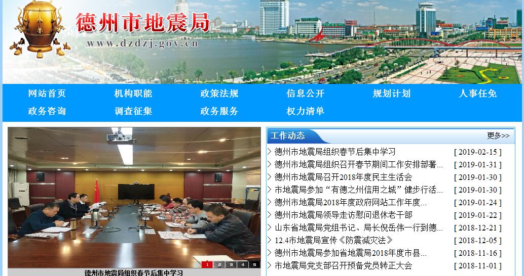 德州市地震局是我市地震工作的行政主管机关,担负着我市地震监测预报、震灾防御、地震应急等工作。目前下设办公室、业务科二个科室和省属地震台。其主要职责:(一)负责贯彻执行、组织实施国家及省制定的防震减灾工作方针、政策、法规及有关规定,会同有关部门加强地震行政执法工作,统一管理本地区的防震减灾工作。(二)编制并组织实施全市防震减灾事业中长期发展规划和年度计划,监督管理防震减灾业务经费和专项资金的使用。(三)承担全市的地震监测预报工作;协助市政府和会同有关部门拟定本地区地震应急预案与综合防御措施,并负责检查、监督、落实;负责震情速报和地震灾情速报,保证地震观测资料、观测数据及时上报,并负责向上级主管部门提供对本地区的地震分析预报意见;管理和组织实施本地区的地震灾害评估工作,参与制定地震灾区重建规划。(四)监督管理本地区的地震烈度区划、震害预测以及重要城镇和重大工程、有严重次生灾害工程、建设场地的地震安全性评价工作;会同有关部门管理地震次生灾害和防灾工作。(五)管理执行本地区以地震动参数和烈度表述的抗震设防标准,会同有关部门审定市级以下重点项目建设场地地震安全性评价和抗震设防标准,指导和监督本地区重大工程的抗震设防工作。(六)推进地震科技现代化,管理和组织地震科学技术研究与攻关及科研成果的推广应用。(七)会同有关部门开展防震减灾宣传教育工作,普及防震减灾知识,提高全社会的减灾意识;负责调查当地有感地震和落实地震异常;及时处理地震谣言、地震误传等突发事件,做好稳定社会的工作。(八)承办市政府和省地震局交办的其他事项。
