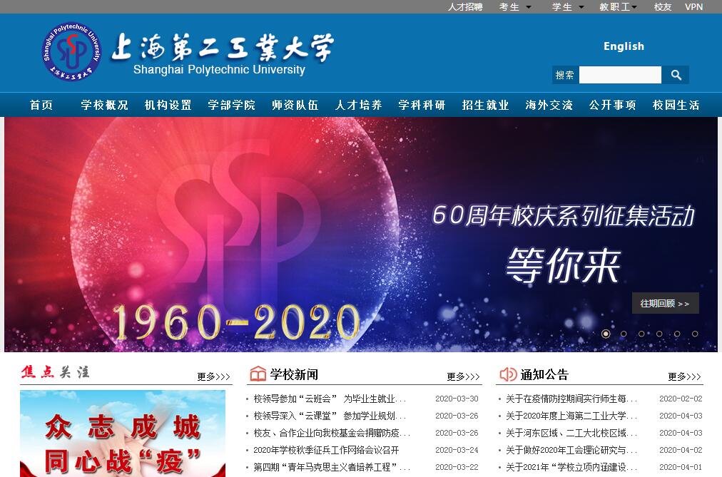 上海第二工业大学成立于1960年,是一所工科见长,管经文理艺多学科协调发展的市属普通高等学校。五十多年来,学校从成人教育起步,到举办全日制高职教育,再到升格为普通本科高校,直至被国务院学位委员会列为“服务国家特殊需求人才培养项目”专业学位研究生培养试点单位,走出了一条技术应用型高校的特色发展之路。办学历程中,学校始终坚持社会主义办学方向,落实立德树人根本任务,坚持“职业导向的高等教育”办学定位,坚持教育与经济社会相结合、教育与生产劳动相结合,遵循教育规律,强化内涵建设,承担社会责任,为上海现代化建设输送了以全国劳动模范和优秀发明家包起帆、李斌等为代表的各级各类技术与应用型人才十一万余名,取得了较为显著的办学成绩,被誉为中国职业教育标杆和劳动模范培养摇篮。2017年,上海市教育委员会组织对学校进行了本科教学工作审核评估,充分肯定了学校的办学定位和办学成绩。学校由主校区和若干个分校区组成,总占地面积近八百亩。主校区位于上海浦东金海路,建筑面积近30万平方米,其中实验实训中心4万多平方米,工程训练中心2万多平方米。拥有标准实验室45个,实验用房面积6.5万平方米,教学科研仪器设备固定资产总值5.12亿元,馆藏纸质图书142万余册,电子书157万余种,拥有完备的计算机网络服务体系。学校实行校部(院)二级管理体制,设有工学部(下设智能制造与控制工程学院、计算机与信息工程学院、环境与材料工程学院)、文理学部(下设理学院、外国语学院、公共关系学系、通识教育中心)、经济与管理学院、应用艺术设计学院、高等职业技术(国际)学院、国际交流学院、马克思主义学院、体育部、工程训练中心、艺术教育中心、继续教育学院和电子废弃物研究中心等12个二级教学、科研单位。学校以本科教育为主体,发展高水平国际化的高职教育,举办富有特色的专业学位研究生教育和留学生教育,承担一定规模的继续教育。现有全日制本专科在校生12450人(本科生9978人,专科生2472人),专业硕士研究生233人,成人学历教育学生8500余人。学校优先发展带领性学科,按照“依托工科、服务工科、引领工科”的思路发展非工学科,构建工科见长,管经文理艺多学科协调发展的学科体系。“材料科学与工程”学科参与上海高校Ⅳ类高峰学科建设,“环境科学与工程(资源循环科学与工程)”学科获批纳入上海高校II类高原学科建设,“热功能材料实验室”积极申报上海市重点实验室。学校现有校级重点学科、培育学科15个。学科建设对硕士培育点的支撑覆盖率达100%,对本科专业门类的支撑覆盖率达100%,对本科专业建设的支撑覆盖率达100%。学校有工学、管理学、经济学、文学、理学、艺术学6个学科门类、22个专业类别,设有43个本科专业、31个高职专业,1个硕士专业学位类别学位点。学校有国家级特色专业3个,教育部卓越工程师培养计划专业2个,教育部“本科教学工程”地方高校第一批本科专业综合改革试点1个,上海市属高校应用型本科试点专业9个,上海市本科教育高地建设项目8个,全英语建设专业2个。学校有中本贯通专业4个,中高贯通专业6个,高本贯通专业1个。学校坚持立德树人,培养掌握职业技能、崇尚职业信用、彰显职业特色的高技术、高技能应用型人才,建立健全全员、全过程、全方位的育人体系和教育教学质量保证体系,持续推进教育教学改革和内涵建设,保证人才培养质量的稳步提高。学校发扬工学结合、产学合作的优良传统,贴近学业、贴近产业、贴近就业,加强专业建设论证与人才培养方案修订,实行完全学分制、学业导师制。学校积极探索和创新多元化的人才培养模式,通过“工程导入”工程硕士培养模式探索、卓越工程师教育培养计划、CDIO工程教育改革、德国FH教育模式本土化实践等,提升学生的工程实践能力、职业适应能力和职业发展能力。以中高贯通、中本贯通、高本贯通培养模式试点为依托,通过培养计划一体化设计,拓展应用型人才的发展通道,努力架构应用型人才的贯通与衔接培养体系。近年来,学校毕业生就业率始终保持在98%以上,学生创业能力持续提高,毕业生质量受到用人单位肯定。学校有国家级精品课程3门,上海市精品课程25门,上海高校市级教学团队14个,上海市教委重点课程75门,上海高校示范性全英语课程8门,上海高校优质在线课程3门,上海高校本科重点教学改革项目20项。近三年,学生参加省部级及以上各类学科技能竞赛176项,共获得奖项781项,其中国家级奖项352项。年均1000余名学生参与市级及校级大学生创新项目。学校大力实施“人才强校”战略,以双师型队伍建设为中心,以学科带头人和创新团队建设为重点,以提高教师综合素质和创新能力为目标,建设一支素质高、技能强、有活力、结构合理、勇于创新的师资队伍。现有教职工1070名,其中专任教师760名,高级职称教师360余名,硕士学位以上教师占比达85%以上,具有企业实践经历教师比例达30%以上。教师队伍中享受国务院政府特殊津贴者2人,入选教育部新世纪优秀人才支持计划1人,东方学者特聘教授4人,浦江计划入选者4人,曙光学者5人,上海高校教学名师4人,上海市模范教师2人。学校注重以科研反哺教学,积极开展符合经济社会发展需求和学校学科专业布局与方向的科学研究,强化应用研究与开发。在