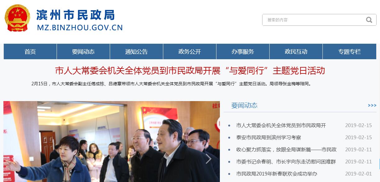 滨州市民政局主要职责:(一)拟订全市民政事业发展规划和规范性文件并组织实施。(二)承担依法对社会团体、民办非企业单位进行登记管理和监察责任。(三)负责全市优抚对象的优待、抚恤、补助和国家机关工作人员伤亡抚恤工作;负责烈士褒扬工作;核准有关人员的伤残等级;审核市以上重点烈士纪念建筑物保护单位;组织指导全市拥军优属工作。(四)负责全市退役士兵、复员干部、移交地方政府安置的军队离退休干部和军队无军籍退休退职职工接收安置工作;指导全市军队离退休干部休养所建设和管理工作;指导全市退役士兵的技能培训工作。(五)拟订全市救灾工作规范性文件;组织、协调救灾工作;组织自然灾害救助应急体系建设;负责组织核查并统一发布灾情;管理、分配救灾款物并监督使用;组织、指导救灾捐赠;拟订全市减灾规划,承担市减灾委员会的日常工作。(六)牵头拟订全市社会救助规划、政策和标准,负责城乡居民最低生活保障、医疗救助、临时救助、生活无着人员救助工作;推进城乡社会救助体系建设。(七)拟订全市城乡基层群众自治组织建设和社区建设政策;指导城乡社区服务体系建设;提出加强和改进基层政权建设的建议;推动基层民主政治建设。(八)拟订全市行政区划总体规划;承办县、乡镇的设立、撤销、更名、界线变更以及政府驻地迁移的调查、论证和申报工作;承办一个乡镇区域内村的分设、裁并、更名、迁移的业务指导和备案工作;组织实施市内县级行政区域界线的勘定和管理工作;承办市际边界争议的调查、协商和申报工作;负责县际边界争议的调查、协调,并会同有关部门提出解决方案;负责全市地名管理工作。(九)拟订全市社会福利事业发展规划和规范性文件;指导全市社会福利机构建设;拟订福利彩票发行管理实施办法,指导、管理福利彩票发行工作;拟订促进慈善事业的规范性文件,组织、指导社会捐助工作;指导管理老年人、孤儿和残疾人等特殊群体权益保障工作。(十)推进婚俗和殡葬改革;指导全市婚姻登记管理服务工作;承办全市涉外、涉港澳台居民、华侨婚姻登记工作;承办全市涉港澳台、华侨收养登记工作;承办全市经营性公墓的调查、论证和申报工作;指导婚姻、殡葬、收养、救助服务机构管理工作。(十一)会同有关部门按规定拟订全市社会工作发展规划、政策,推进社会工作人才队伍建设和相关志愿者队伍建设。(十二)管理国家和省、市拨民政事业经费,指导、监督民政事业经费的使用。(十三)负责本机关及所属单位的安全管理工作。(十四)承办市委、市政府交办的其他事项。