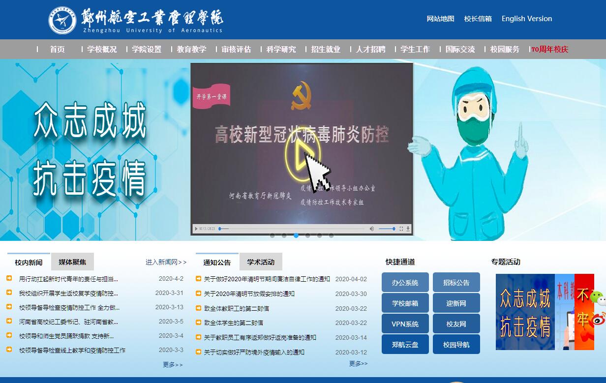 郑州航空工业管理学院是一所以航空为特色,以管、工为主,经、法、文、理、艺等学科协调发展的高等学校。学校始建于1949年,是原航空工业部所属的6所本科航空院校之一,前身为“平原省立财经学校”,后历经“郑州航空工业管理学校”、“郑州航空工业管理专科学校”等发展阶段,于1984年正式更名为“郑州航空工业管理学院(以下简称郑州航院)”,1999年办学体制转变为中央与地方共建,日常管理以河南省为主,2013年获得硕士学位授予权。2017年,入选国家中西部高校基础能力建设工程规划高校。学校占地1900余亩,建筑面积99万平方米,实验室面积7.5万平方米。固定资产总值11亿多元,教学科研仪器设备总值2.02亿元。图书馆藏书211万余册,中外文期刊1176种,各类专业数据库45个。体育活动场地面积8万余平方米。学校秉承“严谨、求实、开拓、进取”之校训,坚持“立足航空产业,服务区域经济”的服务面向,形成了“管理学科为主,管理学与工学密切结合(以下简称管工结合)”的人才培养特色,确立了在航空工业管理和技术应用研究领域中的较强优势。下设17个专业学院和思想政治理论教学部、体育教学部、国际教育学院、继续教育学院、软件职业技术学院。现有3个一级硕士学位授权点、2个专业硕士学位授权点;3个省重点一级学科,4个省重点二级学科,1个河南省优势特色学科。现有75个本科专业(含专业方向)和4个专科专业,其中包括国家级特色专业3个,省级特色专业9个,省级专业综合改革试点9个。建有飞行器动力工程、飞行器适航技术、飞行技术、播音与主持艺术专业(空乘方向)等航空特色专业。“德育首位,教学中心,质量至上,育人为本”的办学理念深植人心,着力培养具有社会责任感、较高人文素养、较强创新创业意识和实践能力的高素质复合型应用人才。拥有省教学团队7个,省精品资源共享课程4门,省精品在线开放课程2门、省双语教学示范课程2门;拥有校外实践(实习)基地239个。学生积极参加国内外科技大赛,近三年获省级以上竞赛奖励600余项,一大批优秀学生代表学校站上了国内诸多重要赛事的领奖台,荣获了全国大学生机械创新设计大赛全国一等奖、全国大学生管理决策模拟大赛全国总决赛冠军、全国金相试样制备大赛一等奖、第三届“互联网+”大学生创新创业大赛全国铜奖,学校连年被国家或河南省评为大学生社会实践活动先进集体。学校始终注重提升科研水平。建有省协同创新中心1个,省重点实验室1个,省工程实验室5个,省工程技术研究中心3个,省工程研究中心2个、省高校实验教学示范中心5个等科研教学平台。拥有省创新型科技团队5个、省科技创新人才5人、省高校科技创新团队5个、省高校科技创新人才17人。近年来,学校承担了国家杰出青年科学基金1项,国家自然科学基金项目66项,基于NSFC国际合作项目12项,国家社会科学基金项目35项。承办了中德“先进陶瓷材料设计、制备与应用”双边学术研讨会、中国建筑学会建筑经济分会学术年会;主办了管理工程与信息技术国际学术会议、第三届信息管理与工程国际学术会议、中国会计学会管理会计与应用专业委员会2011年学术年会、第十五届全国消费经济理论与实践研讨会等高水平学术会议。学校现有专任教师1092人,其中教授107人、副教授308人、具有博士学位的教师310人、具有硕士及以上学位人员1020人。拥有全国优秀教师4人,全国模范教师1人,全国师德先进个人1人,教育部新世纪优秀人才3人,享受政府津贴专家7人;省级学术技术带头人7人,省教育厅学术技术带头人49人,省级高校青年骨干教师66人,省级教学名师4人,省级优秀教师12人,省级先进教育工作者2人,省级师德先进个人7人;博士生导师1人,硕士生导师188人;聘请了4位院士及百余位国内知名专家为兼职教授。学校面向全国28个省、直辖市、自治区招生,会计学、金融学、工业工程、工程管理等7个专业在河南省纳入一本批次招生,现有全日制本科生、研究生、留学生等28000余人。在建校以来为航空工业和国民经济建设输送的13万名高级人才中,航空工业下属企业80%以上的总会计师、副总会计师均为我校校友,涌现出河南省政协副主席钱国玉、国防科工局副局长张建华、中国航空工业集团公司原副总经理顾惠忠、中国石油天然气集团公司总会计师刘跃珍、中国航空工业集团公司总会计师李耀、中航贵州飞机有限责任公司董事长周辉等为代表的大批优秀校友,近年来,毕业生就业率均在95%以上,位居河南省高校前列,为国防现代化和国民经济建设做出了重要贡献。学校曾荣获“河南最具公信力的十大教育品牌”、“河南本科院校综合实力20强”、“河南最具就业竞争力示范院校”、“河南高等教育质量社会满意院校”等荣誉。学校坚持“协同办学、协同育人、协同创新”开放办学理念。与美国、英国、德国、韩国、法国、波兰、坦桑尼亚、台湾等国家或地区的高校和科研机构开展了多形式、深层次、宽领域的合作交流。与坦桑尼亚多多马大学合作建立孔子学院,荣获“公共外交工作先进单位”、“中坦友好使者奖”和2014全球“先进孔子学院”称号。与波兰华沙人文社科大学合作举办2个本科层次合作项目。与中国航空工业集团公司签署战略合作协议。与北京航空航天大学合作培养“大改架”飞行学员培训项目。与中航