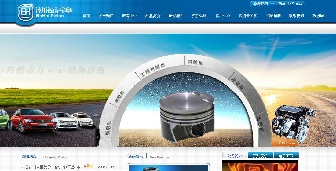渤海活塞(股票代码:600960.SH)地处山东半岛蓝色经济区和环渤海经济圈交汇的黄河三角洲腹地-----滨州。“哪里有内燃动力,哪里就有渤海活塞”诠释了60多年的发展历程;“不居第一不罢休,位居第一不止步”见证了自1986年至今国内行业领军地位;以“卓越品质、绿色智造”为使命,基于物联网技术产品全生命周期管理,践行“中国制造2025”。产品领域涉及活塞及组件、精密数控机床、轻量化新材料等相关产业链。公司综合实力全球行业排名第4位。公司主导产品Φ30mm—Φ350mm高性能活塞,品种达1000多个、年产能力3000万件,是国内唯一一家能够全面生产各种汽车、船舶、工程、军工等动力机械用活塞的专业化企业;在国内34个省、市、自治区建立了覆盖全国的220余家社会配件经销商营销网络,为国内上汽集团、一汽集团、东风汽车、北汽集团、长安汽车、广汽集团、中国重汽、福田汽车、潍柴动力、玉柴机器、江淮汽车、江铃汽车、长城汽车、吉利汽车、比亚迪、奇瑞汽车、华晨汽车、海马汽车、云内动力、全柴动力、江苏常柴等多家知名主机厂配套,活塞产品制造产能居世界单个工厂首位,国内综合市场占有率35%,国内欧III、欧IV等高端产品市场占有率达到50%以上;国外市场遍及北美、欧洲、东亚、中东等地区,拥有大众汽车、通用电气、康明斯、卡特彼勒、约翰迪尔、菲亚特、科勒等国际高端客户;博海精机除为公司内部提供装备外,已实现外销,并出口国际市场。在进行自主创新、发展自主品牌的道路上,渤海活塞的步伐无比坚定。率先创建了全国同行业首家国家级技术中心、国家认可实验室和国家工程实验室、企业博士后工作站、国家高新技术企业。具备了与发达国家同步研发、试验、评价的手段,多种新产品及发明新专利的技术水平已达到和代表国际前沿水平,成为中国活塞第一品牌、中国内燃机活塞设计开发基地,获得中国活塞产品唯一“中国名牌产品”和“中国驰名商标”称号。公司认真执行国家《产品质量法》、《环境保护法》、《安全生产法》、《职业病防治法》等法律法规和其他方面要求,积极采用国际和国外先进标准组织生产;公司于1995年在全国同行业率先通过ISO9002认证,2000年至今又先后通过QS-9000、VDA6.1、ISO9001和IATF16949认证;现按IATF16949/ ISO14001/ OHSAS18001标准整合建立了质量、环境及职业健康安全管理体系,使体系更精简和优化,符合企业实际。渤海活塞先后引入精益生产管理、六西格玛管理、卓越绩效模式等先进的质量工具和管理标准,整合SQAP-LPA、QSB-LPA、Cummins-LPA等不同的质量技术标准,建立和实施一套既符合中国企业实际,又与国际客户对接的制造过程审核方法——《渤海活塞分层过程审核系统(BH-LPA)》,创新性增加了分层审核的绩效评价标准,在此基础上集成创新了以卓越绩效模式为基础构架,以“方法、展开、学习、整合”为评价标准,推动企业管理水平稳步提升,走向卓越。渤海活塞先后荣获中国企业管理最高奖——“全国质量奖”;还获得国家质量安全标准化一级企业、工信部两化融合管理体系、全国机械工业质量奖、中国汽车零部件十强上市公司、国家AAAA标准化良好行为企业、全国100家最佳汽车零部件供应商、中国汽车零部件活塞行业龙头企业、中国汽车零部件上市公司十强企业、首届山东省省长质量奖、首届山东省管理创新奖、全国重合同守信用企业、全国质量工作先进企业等省级以上荣誉50余项。下一步,公司将依托《中国制造2025》,持续打造与战略相匹配的信息化环境下的新型能力,逐步建立适合企业自身发展的零距离、全方位、透明化、智能化的决策管理中心;创新发展、和谐发展,努力实现“全球最佳汽车零部件供应商”的企业愿景。2015年6月,渤海活塞国有股权划归北汽集团后,将依托上市公司资本运作平台和已有技术优势重点研发汽车铝合金零部件,并参股北汽新能源汽车,作为集团汽车零部件轻量化、新能源、智能化的战略实施主体,加快资产重组和国际合作,加强人才特别是科技人才和高技能人才队伍建设,将渤海活塞建设成为具有世界一流水平的、国际知名的活塞研发制造基地和汽车零部件轻量化基地,为实现北汽梦和海纳川公司“十三五”千亿元的目标做出积极的贡献。