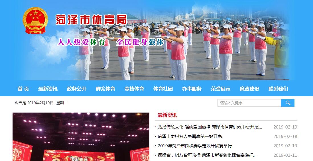 | 网站简介: 菏泽市体育局为菏泽市人民政府职能部门,正县级单位。其主要职责:(一)拟订全市体育事业发展规划和政策并组织实施;负责推动多元化体育服务体系建设,推进体育公共服务和体育体制改革。(二)统筹规划全市群众体育发展;推行全民健身计划;组织实施国家体育锻炼标准,推动国民体质监测和社会体育指导员工作队伍建设;指导公共体育设施建设,负责对公共体育设施的监督检查。(三)统筹规划全市竞技体育发展,确定体育运动项目设置和重点布局;指导协调体育训练和体育竞赛,指导运动队伍建设;组织参加和承办重大体育竞赛,管理指导全市体育竞赛工作。(四)拟订全市体育产业发展规划、政策;规范体育服务管理,推动体育标准化建设;负责体育彩票的发行管理工作。(五)指导体育宣传、科技、教育和培训工作;负责组织、协调、监督体育运动中的反兴奋剂工作;组织开展体育领域科技研究、技术攻关和成果推广。(六)统筹规划全市青少年体育发展,指导和推进青少年体育工作。(七)开展对外体育合作与交流,指导管理体育外事和对外体育交往活动。(八)承办市委、市政府交办的其他事项。 |