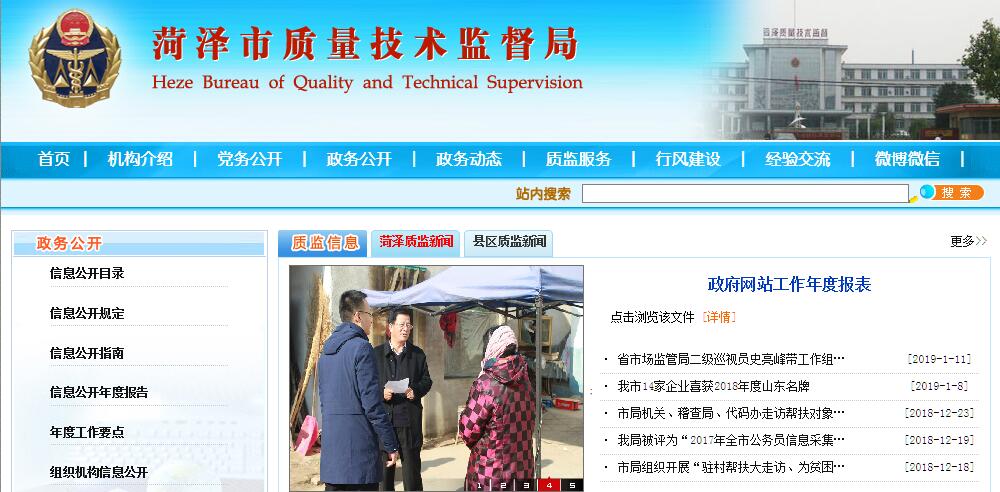 菏泽市质量技术监督局是市政府统一管理标准、计量、质量和产品管理工作的主管部门,内设8个科室:办公室、人事科、财务与科技科、质量管理科(挂审批服务科牌子)、监督与法制科、标准化科、计量科、特种设备监察科。下属2个直属单位:市质监局稽查局、市产品组织机构代码管理办公室;1个代管机构:市产品检验检测研究院。菏泽市质量技术监督局作为政府统一管理和组织协调全市标准化、计量、质量、特种设备安全监察工作的职能部门,其主要职责是:一、贯彻执行国家、省有关质量技术监督工作的方针、政策和法律、法规、规章;按照法律法规赋予的行政许可权限,组织开展行政许可工作;组织依法查处违反质量技术监督法律的行为。二、组织实施质量发展规划;参与全市产品质量诚信体系建设;推进质量强省、质量强市战略和名牌发展战略;组织开展地理标志产品保护工作;组织实施质量奖励制度;推行质量责任制度;协调开展重大工程设备质量监理工作;组织开展较大工业产品质量事故调查。三、组织实施工业产品质量监督检查、风险监控工作;负责工业产品生产许可证、机动车安全技术检验机构资格管理工作;监督管理工业产品质量仲裁检验;组织开展工业产品质量专项整治工作,依法查处工业产品质量违法行为;组织协调全市有关专项打假活动;实施缺陷工业产品召回制度;负责产品防伪的监督管理工作。四、组织、监督国家标准、行业标准和地方标准的贯彻实施;组织制定农业标准规范;推行采用国际标准和国外先进标准;负责企业工业产品标准备案工作,负责企业工业产品执行标准登记工作;负责组织机构代码和商品条码管理工作。五、推行法定计量单位和国家计量制度,依法管理计量器具和量值传递、强制检定工作;负责规范和监督商品质量与市场计量行为;监督管理计量检定机构和检定人员的资质资格。六、依法开展检验机构的资质认定工作;依法监督强制性产品认证和自愿性认证工作。七、承担食品相关产品的质量监督管理责任,根据职责分工组织实施市场准入工作。八、负责特种设备安全监察工作;按规定权限组织或参与特种设备安全事故的调查处理;监督检查高耗能特种设备节能标准的执行情况。九、承办市委、市政府交办的其他事项。