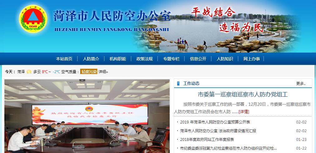 菏泽市人民防空办公室主要职责:(一)拟定全市人民防空建设规划并组织实施。(二)贯彻执行国家人民防空重点城市的防护类别、防护标准;参与城市总体规划中落实人民防空防护要求的审核和城市地下空间开发利用规划的编制,并监督检查人防要求落实情况;编制人防建设专项规划并监督执行。(三)组织实施人民防空指挥工作。拟定全市防空袭方案和各项保障计划;负责全市人口疏散体系建设;组织全市防空袭演习演练,组织开展重要经济目标防护工作;组织指导群众防空组织的建设和训练工作。(四)组织管理全市人民防空工程建设。贯彻执行国家人民防空工程防护标准和质量标准;负责地下防护建筑建设管理,参与城市应建防空地下室的民用建筑计划和项目报建陪审,按照国家有关规定负责防空地下室防护方面的设计审查和质量监督;管理结合地面建筑修建防空地下室工作。(五)组织人防信息化体系建设。负责市级人防信息化平台建设与管理;组织实施全市人防通信警报、信息网络建设,协调利用电信、军队通信网以及其他专用通信网保障人防通信警报工作,会同无线电管理部门实施人防无线电专用频率管理。(六)组织人防平战结合和防空防灾一体化建设。组织实施指挥、工程、通信警报、疏散体系及群众防空组织等人防战备资源的平时开发利用;指导全市利用防空警报发布灾情警报;参与政府应急管理和城市防灾救灾、抢险救援工作。(七)会同有关部门负责市人民防空指挥所的勘察定点,并负责建设与管理。(八)组织开展人防科研、宣传教育工作;负责人民防空行业标准化工作。(九)按照有关规定管理国家、省、市拨人防经费和国有资产。编制全市人防经费预决算;负责结合民用建筑修建防空地下室征缴易地建设费工作;监督管理人防系统国有战备资产;会同有关部门制定人防建设市场投资融资优惠政策。(十)组织人防机关“准军事化”建设;负责全市人防系统的战备值勤和应急值班工作。(十一)战时在市人防指挥部统一领导下,根据有关命令、指示,发布空袭警报、实施灯火和交通管制,组织实施群众疏散和隐蔽方案;组织群众防空组织消除空袭后果,防范次生、衍生灾害;协助有关部门及时恢复生产生活秩序。(十二)承担市人民防空工作军政联席会议的日常工作。(十三)承办市委、市政府、军分区和市国防动员委员会交办的其他事项。