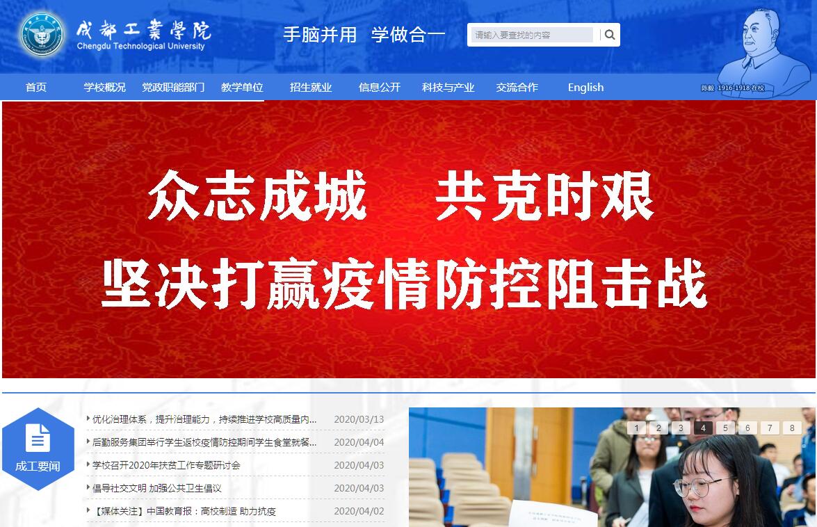 成都工业学院是四川省人民政府举办的公办全日制普通本科学校。学校创办于1913年,是辛亥革命后四川省举办的第一所实业学校。学校曾先后12次更名,历经四川省立第一甲种工业学校、四川省立成都高级工业职业学校、成都无线电机械学校、成都电子机械高等专科学校等多个历史发展阶段。新中国成立后长期直属国家电子工业部,1987年起改由四川省人民政府主办、省电子工业厅主管,2000年调整为四川省教育厅主管。陈毅元帅曾于1916-1918在我校染织专业学习。江泽民同志曾视察过我校,并亲笔为学校七十五周年校庆题词:“发扬优良传统,培养优秀人才”。学校现为全国“十三五”产教融合发展工程“应用型本科高校建设”规划项目院校,获得了中央支持地方高校改革发展专项资金项目单位资格,四川省首批“卓越工程师教育培养试点高校”,四川省首批教育综合改革试点单位、“本科院校整体转型发展改革”试点单位,四川省首批创新改革试点院校,四川省博士后创新实践基地,学校科技园为四川省第8家省级大学科技园,入围首批四川省高校创新改革试点单位,当选全国新建本科院校联盟副理事长单位,牵头组建并当选为四川省应用型本科高校联盟理事长单位,当选为四川省装备制造业产教联盟副理事长单位,是四川省教育厅、四川省经济和信息化委员会“厅委共建”院校。建校一百余年来,学校从未间断过办学,始终秉持“手脑并用、学做合一”的校训和“严谨、朴实、勤奋、创新”的校风,坚持“根植地方,魂在应用,产教融合,协同育人”,为国家培养了一大批优秀人才,为地方的社会经济发展倾尽绵薄之力。学校占地面积1000亩,主校区位于成都郫都区,此外还有成都市中心的花牌坊校区和北郊的大丰校区,普通全日制学生集中在主校区学习。学校设有机械工程学院、材料工程学院、电气工程学院、电子工程学院、网络与通信工程学院、经济与管理学院、计算机工程学院、人文体育与设计学院、建筑与环境工程学院、马克思主义学院(筹)、创新创业学院、信息与计算科学系、外语系等13个教学院系和1个继续教育学院,有27个本科专业。全日制在校学生约12700人。学校共有教职工811人,其中专任教师600余人,副高以上高级职称教师300余人,硕士及以上学位教师500余人;3名国家级教学名师和6名省级教学名师,1名“青年千人计划”教师,3个国家级教学团队(计算机、机械、机电)和4个省级教学团队,教师荣获全国师德先进个人、全国优秀教师、省师德标兵、享受政府特殊津贴的专家、省学术与技术带头人及后备人选、省有突出贡献的优秀专家等称号40余人次。学校“材料成型及控制工程”、“机械电子工程”、“微电子科学与工程”成功入选四川省首批地方普通本科高校应用型示范专业。《冲压工艺与模具设计》、《高等数学》、《机械制造技术》3门获批为省级精品在线开放课程。学校以《转型发展,产教“五融合”,培养应用型工程人才》为题的教改项目获得四川省第八届高等教育四川省教学成果一等奖。 学校教学仪器设备总值1.28亿元,图书馆藏书123万余册,建有设备值超过1000万元、基于万兆主干网的校园网,已形成比较完善的计算机网络服务体系,在四川省高校校园网建设检查评估中被评为“优秀”。学校有教育部批准设立的3个国家级实训基地(机械电子工程、数控技术、汽车检测与维修),3个四川省教育厅重点实验室(模具、电加工、无人机飞行控制系统应用与技术)和2个四川省哲学社会科学重点研究基地(性社会学与性教育研究中心、无人机产业发展研究中心);建有50个建制实验室,200个功能实验室,其中17个实验室为与英特尔成都公司等校外单位共同建设的“产学研用”实验室,电工电子实验室为“四川省优秀基础课实验室”。3个省级实验教学示范中心,1个省级虚拟仿真示范中心。学校校内还建有“工程素质训练中心”、“大学生特质培养创新中心”及与行业骨干企业合作建立的126个校外实习基地,其中3个省级大学生校外实践教学基地(宏明、仕兰、宁江机床)。学校一直坚持产学研相结合的应用型人才培养模式,注重培养学生的学习、实践、创新能力。我校“校企合作,实现工程实训基地运行机制创新的探索与实践”曾获得国家级教学成果一等奖,在校内建设真实工程环境的训练中心的研究成果在其他高校得到了推广应用。学生在各项全国学科竞赛中成绩突出,在“全国大学生数学建模竞赛”“全国大学生电子设计大赛”等比赛中,获得国家级一、二等奖几十项,2013年我校学生获全国大学生数学建模竞赛的冠军,荣获“高教社杯”。学校广泛开展了与美国、英国、加拿大、爱尔兰、德国、日本、新加坡、澳大利亚、新西兰等国家及我国香港、台湾地区的交流与合作,每年选派多名师生赴海外和港台地区访学进修、合作研究和交换学习。与加拿大荷兰学院合作培养了十届近千名双文凭毕业生。经过长期的建设和发展,学校以严谨的治学、稳定的教学秩序、良好的育人环境,保证了人才培养的质量,在培养应用型人才的教学改革方面取得了突出的成绩。毕业生深受社会各界欢迎。学校长期与中国电子科技集团、Intel公司、长虹、九洲、华为、京东方、TCL、格力电器、重庆平伟、迈普、上海莫仕、富士康、五粮液等知名企业合作。毕业
