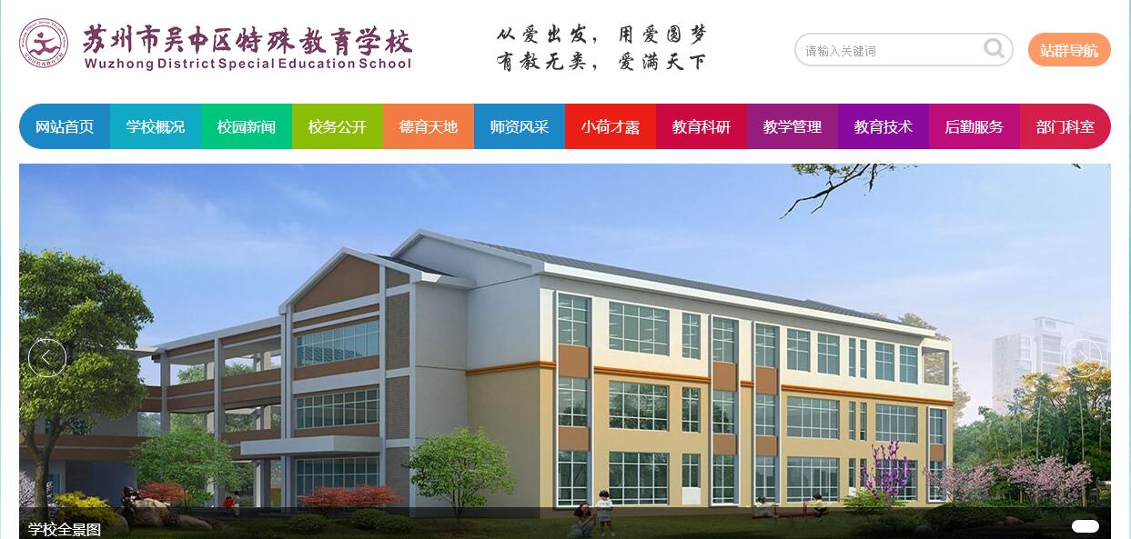 苏州市吴中区特殊教育学校1988年建校,目前学校有教职员工29人,其中专职教师24名,中学高级教师1名,小学高级教师19名,占专职教师的79.2%,特殊师范学校毕业教师9名,占专职教师的37.5%,大学本科学历教师14名,占专职教师的58.3%。有9个教学班,7个聋班,2个培智班,在校学生79名。学校占地面积163000平方米,生均用地面积为206平方米,建筑面积3490平方米,生均建筑面积44平方米。全校用地面积为206平方米,生均62平方米。现有各类专用教室24个。1988年建校以来,学校始终坚持以“教育要面向现代化、面向世界、面向未来”为指针,恪守“育残成才,补偿缺陷,服务社会”的办学宗旨,全面贯彻党的教育方针,整体推进素质教育,努力实施教育现代化工程,初步形成了“勤劳、诚实、文明、进取”的校风、“以身立教,立志奉献”的教风和“虚心好学,勤奋求真”的学风。多年来,学校始终把素质教育的重中之重恒定在队伍建设和课堂教学上,积极推行“树立五种意识(整体意识、层次意识、主体意识、规范意识、效益意识)、强化四项管理(目标管理、常规管理、过程管理、质量管理)、实现三个优先(在课堂教学中对后进生实施优先提问、优先面批、优先个别辅导)”的课堂教改思路,并逐步内化为全校教师的教学行为,深化教改,全面提高课堂教学的整体效益。学校认真落实“以教育科研为先导,办学特色为重点,能力培养为抓手,教育质量为根本”的办学思路,并通过持之以恒、目标如一的工作,逐步凸现“以教科研为切入口,培养聋生自主自强精神和生存发展能力”的办学特色。学校还致力于构建一个“人与自然和谐统一”的人文育人环境,不断加大校园环境建设,积极推进教育现代化工程,精心构建绿色校园和数字化校园,全面深化素质教育,不断提高办学质量。进一步走内涵发展与品位提升之路,努力营构“平安聋校”、“和谐聋校”、“绿色聋校”,积极构建特殊教育教师专业发展的绿色通道,努力营造残疾儿童少年健康成长的生命绿洲,建立师生、生生以及教师群体间多维度和谐关系,创造良性的竞争环境。学校为教师配制精神套餐,引领教师走专业发展的道路;为学生设置多元化课程内容,努力培养学生自主、自强的精神和生存发展的能力,为学生的生命发展奠基;坚持以教师的可持续发展促学生的可持续发展,以师生的可持续发展促学校内涵发展与品位提升。校园环境优美,春有花,夏有荫,秋有果,冬有色,四季常绿,月月有花。建有“班班通”校园网和校园闭路电视系统,实现10兆宽带接入,实物展示台进课堂,开辟了语训室、听力检测室、网络教室、多媒体电化教室、自然实验室等二十四个专用教室,初步形成了科学合理的语训康复中心、教学中心、职业(劳技)中心、生活中心和活动中心的整体布局,现代化教育教学、管理的整体水平在全市特教系统居领先地位,且正在向新一轮目标冲刺。自1998年起,学校连年被区教育局评为“常规管理先进学校”,先后被授予“吴县市文明单位”、“苏州市扶残助残先进集体”、“苏州市教育信息化先进学校”、“苏州市残疾人工作先进集体”、“江苏省绿化标准达标单位”“江苏省特殊教育现代化示范学校”、“江苏省第五批绿色学校”等荣誉称号。98年起,先后有75人次教师获得省、市、区荣誉称号,涌现出了1名省特殊教育先进工作者,3名苏州市优秀教育工作者,6名区优秀教育工作者,4名区特殊教育先进工作者,1名区青年教学能手,1名区学术带头人,3名区学科带头人,2名区教坛新秀,4名区育苗奖,6名区师德先进教师。实施素质教学和教育现代化工程促进了学生各方面的发展,提高了学生自主、自强的精神和社会生存与发展的能力,使一大批学生学有所长。1998年省首届聋校乒乓球比赛中,我校获女子团体季军、男子团体第五名,1999年获“苏州聋校田径运动会团体总分第四名。”2000年在市校园文艺汇演中,学生舞蹈获得特别表演奖;在市残疾人文艺汇演中获特别组织奖和演出一等奖。2005年,毕业生蔡艳岚同学被南京市特殊教育艺术学院艺术系录取,张静、尤杰、吴春燕、张唯燕四位同学被苏州市盲聋哑学校职高班录取。2006年,我校2003届毕业生吴芳娣、李晴、严春芳三位同学被中州大学录取,吴芳娣更是以512分的高分一举获得2006年中州大学的高考状元。近几年中,学生个人参加各级、各类比赛获全国奖30多人次,省级奖20多人次,苏州市级奖40多人次,吴中区级奖20多人次。目前,学校在区教育局关于“加快发展,缩小差距,提升品位”的办学方略指导下,自强不息,努力构建“平安聋校、和谐聋校、绿色聋校”,正朝着江苏省模范学校的目标迈进。