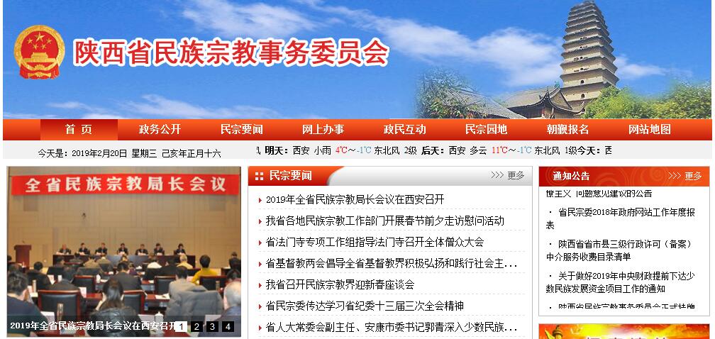 根据《中共中央办公厅 国务院办公厅关于印发〈陕西省人民政府机构改革方案〉的通知》(厅字〔2008〕23号),设立省民族事务委员会(省宗教事务局),为省政府组成部门。其主要职责:(一)贯彻执行党和国家关于民族、宗教工作的方针、政策和法规,认真落实省委、省政府关于我省民族和宗教工作的政策、部署和指示。(二)组织开展对全省少数民族和宗教情况的调查研究,提出我省有关民族、宗教工作的具体政策,草拟民族宗教方面的地方性法规和政府规章草案并组织实施。(三)监督办理少数民族权益保障事宜,促进各民族间的平等团结、互助合作。依法履行宗教事务管理职责,保护公民宗教信仰自由,维护宗教界的合法权利,促进宗教关系和谐。(四)负责协调兼职委员单位和有关部门共同做好少数民族工作;协助拟订少数民族经济发展规划,督促检查规划实施情况,拟订少数民族聚居地区经济发展的特殊政策和措施。(五)在国家有关方针、政策指导下,协调有关部门做好少数民族教育、文化、艺术、卫生、体育、新闻出版等方面的工作,承办相应事宜。(六)引导、促进宗教在法律、法规和政策范围内活动,防范利用宗教进行非法、违法活动,抵御境外利用宗教进行渗透活动。(七)指导宗教团体依法依章开展活动,支持宗教团体加强自身建设,帮助指导宗教团体办好宗教院校,办理宗教团体需由政府协助或协调的事务。(八)负责组织全省民族宗教工作队伍和有关人员的培训工作;协助有关部门做好少数民族干部的培养和使用工作。(九)组织协调民族、宗教对外交流与合作;配合国家宗教局落实宗教外事归口管理工作。(十)依法审核审批宗教方面的有关事项,指导市、县民族宗教工作部门依法履行管理职能。(十一)推动各民族和宗教界人士进行爱国主义、社会主义、拥护祖国统一和民族团结的自我教育,搞好民族团结进步活动。(十二)承办省政府交办的其他事项。