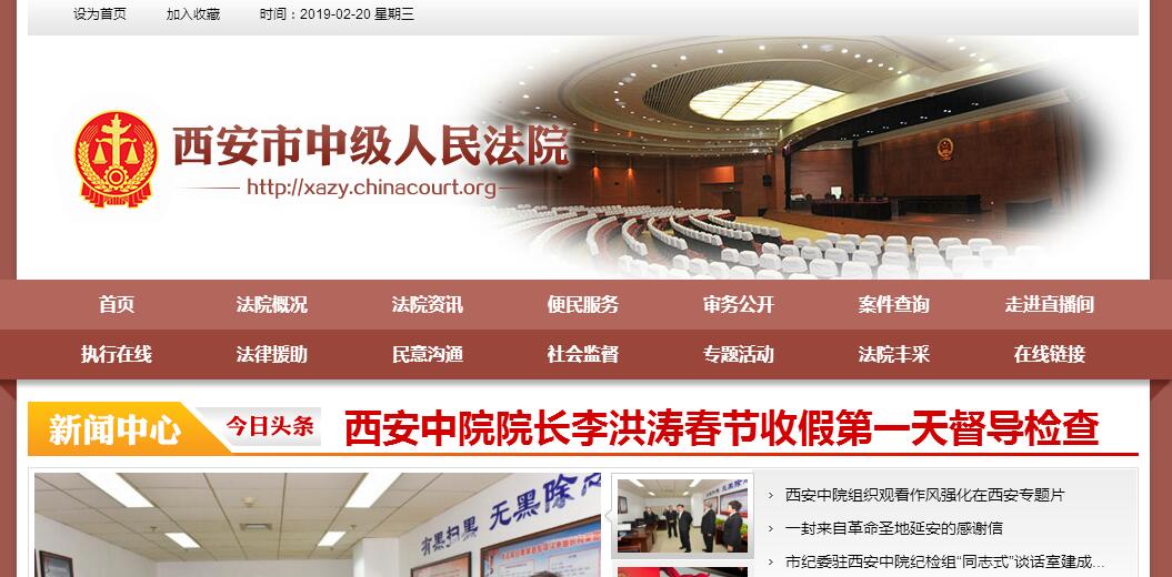 西安,古称“长安”,是与雅典、罗马、开罗齐名的世界四大古都之一。公元前12世纪,自周文王姬昌定都此处后,西安作为中国的政治、经济、文化中心长达1200多年,有13个王朝在此建都,中国历史上四个鼎盛朝代周、秦、汉、唐均建都西安。1981年联合国教科文组织把西安确定为“世界历史名城”,西安也是国务院公布的国家历史文化名城之一。当今的西安是中国七大区域中心城市之一,亚洲知识技术创新中心,新欧亚大陆桥中国段和黄河流域最大的中心城市,中国大飞机的制造基地,中西部地区最大最重要的科研、高等教育、国防科技工业和高新技术产业基地。2009年国家颁布的《关中-天水经济区发展规划》中,西安继北京、上海之后被列为我国第三个“国际化大都市”。随着《关中-天水经济区发展规划》的落实,一个展示中华传统文化神韵,展示现代文明建设成果的新西安将呈现在世人面前。西安市中级人民法院位于西安市北二环东段139号,是依法设立的国家审判机关,辖9区4县共13个基层人民法院,27个人民法庭,共有干警1924名。全市法院年受理案件约70000件,约占全省法院受理案件总数的三分之一。其中,西安中院年审结案件约13000件。西安中院还承担全省大部分涉外案件和全市知识产权案件的审理任务。2012年至今,全市法院有11个单位受到最高人民法院表彰,50个单位受到省级表彰,119名干警受到省级以上表彰。西安中院现有干警436人。其中,博士、硕士研究生以上41人,大学本科368人,大专学历25人;具有法官职务人员264名,在审判一线工作法官203名。内设刑事审判庭(2个),民事审判庭(4个),立案庭(2个),审判监督庭、行政审判庭、审判管理办公室,未成年人案件综合审判庭、高新技术产业开发区综合审判庭、执行工作局(下设执行一庭、执行二庭、综合处)等14个审判业务部门;政治部(下设人事处、宣传处、教育培训处、离退休干部管理处4个处)、办公室、司法行政装备管理处、法警支队、司法技术室、研究室、监察室(与纪检组合署办公)、机关党委等8个综合部门。