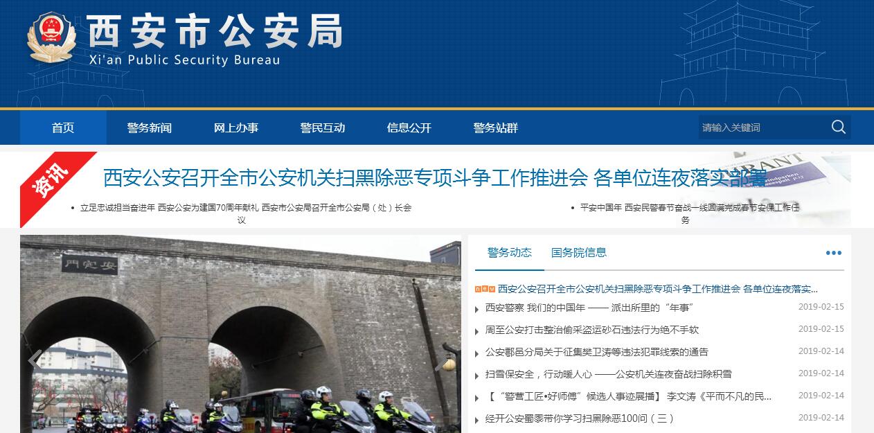 西安市公安局是西安市人民政府的组成部分,属西安市人民政府直接管理。同时受中共西安市政法委员会领导。主要工作职能如下:一 、贯彻执行党和国家有关公安工作的方针、政策、法律、法规和市委、市政府、上级公安机关的指示,部署、指导、监督、检查全市公安工作。二 、管理全市公安机关110报警指挥系统,处理市区110报警、群众求助和监督电话,对紧急治安事件和重大紧急情况,实施统一指挥调度。三 、掌握影响稳定、危害国内安全和社会治安的情况,分析形势,提出对策措施。四 、主管和指导全市各类刑事案件、经济案件的侦查等工作,组织、协调特别重大案件和跨区、县(市)重大案件的侦破工作。五 、指导、监督全市公安机关依法查处危害社会治安秩序的行为,依法管理户籍、居民身份证、枪支弹药、危险物品和特种行业,组织协调对重、特大治安事件和突发性事件的处置工作。六 、依法管理、指导中国公民出入境和外国人在中国境内居留、旅行的有关工作。七 、领导、监督全市消防工作。八 、负责对全市公安机关维护道路交通安全、交通秩序工作的管理、指导和监督;负责全市机动车辆、驾驶员管理工作,处理市区交通事故,指导处理全市的重、特大交通事故。九 、负责指导全市公安机关对国家机关、社会团体、企事业单位和重点工程的治安保卫工作以及群众性治安保卫组织的管理指导工作。十、指导全市公安机关对公共信息网络的安全监察,组织实施网络监控工作。十一 、指导监督全市公安机关依法承担的执行刑罚和对看守所、治安拘留所、强制戒毒所、安康医院的管理工作。十二、组织实施对来我市的党和国家领导人、重要外宾以及重大活动、重要会议的安全警卫工作。十三 、组织、指导禁毒缉毒工作,承担市禁毒工作领导小组办公室的日常工作。十四、组织实施公安科学技术工作;规划全市公安信息技术、刑事技术等建设;负责全市技术防范工作和社会公共安全产品的监督管理。十五 、负责全市公安机关装备、被装和经费等警务保障工作。十六、按规定的权限,领导和指挥市武警部队执行公安任务。十七、协同区、县(市)党委管理区、县(市)公安机关领导干部;组织、指导全市公安队伍建设、民警教育训练和宣传等工作。十八 、分析队伍状况,研究、制定全市公安队伍监督管理的规章制度;组织指导公安机关警务督察工作;指导全市公安机关执法活动,对公安机关及其人民警察的执法情况进行监督;按规定权限实施对干部的监督;查处或督办重大违纪案件。十九、指导林业公安机构等的业务工作。二十、承办市委、市政府和上级公安机关交办的其他事项。