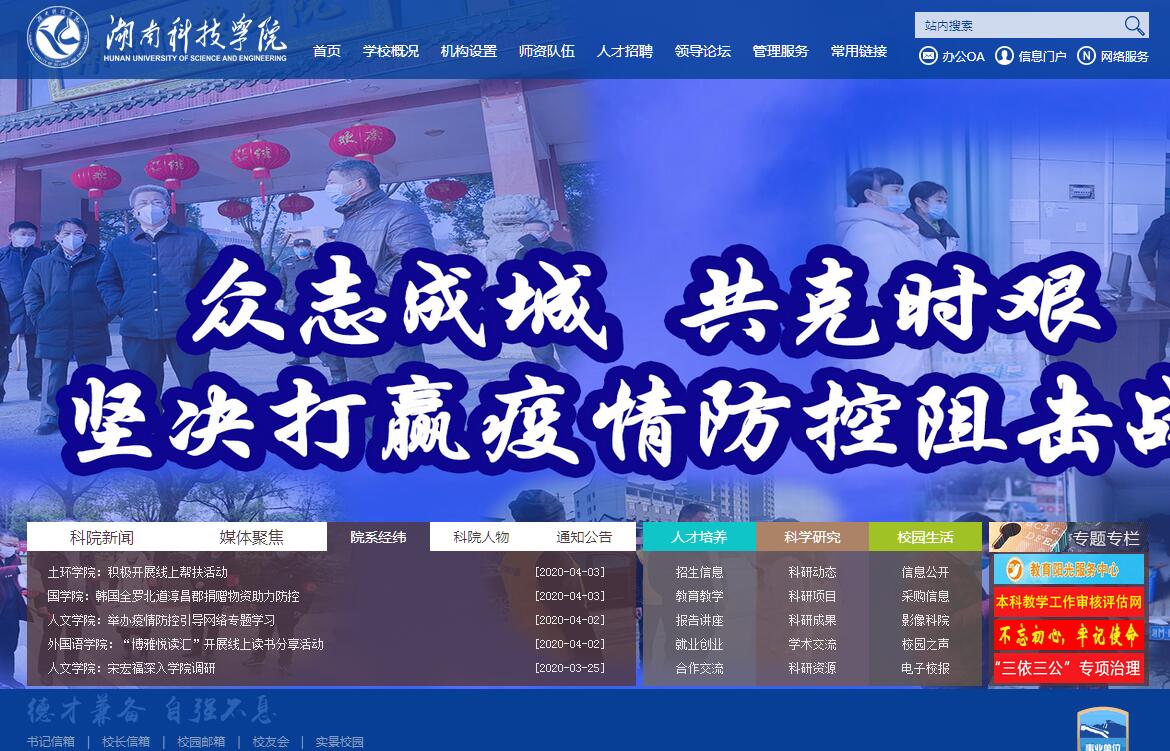 湖南科技学院是一所经教育部批准,由湖南省教育厅主管的公办全日制普通本科院校。学校办学始于1941年,前身为湖南省立第七师范学校,2002年由原零陵师专升格为本科院校,定名零陵学院,2004年更名为湖南科技学院。经过70余年的建设和发展,现已成为一所综合性应用型本科院校。学校坐落在中国二十强幸福城市、湖南省历史文化名城——永州市。永州又名零陵。《史记·五帝本记》载:“舜南巡狩,崩于苍梧之野,葬于江南九疑,是为零陵”。零陵之名从此著称于世,并成为出现于夏代以前且沿用至今的重要古地名之一。永州境内潇湘二水纵贯南北,五岭山脉横亘东西,湘桂高铁、洛湛铁路、泉南高速、二广高速、厦蓉高速纵横交错,零陵机场开通长沙、昆明、深圳等多条航线,风景秀丽,人杰地灵,交通便利。这里是舜帝道德文化、理学文化、瑶文化、女书文化发祥地,孕育了柳宗元、怀素、周敦颐、何绍基、李达等文化名人。由于文化底蕴深厚,被誉为“一本读不完的书”。学校建有15个教学学院,46个普通本科专业,面向全国27个省(市、区)招生。现有普通本科在校学生14800余人,成人教育在校学生5000余人。现有教职员工近1100人,其中专任教师750余人,具有正高、副高职称338人,具有博士、硕士学位823人,有省“121”人才工程人选7人,享受国务院政府特殊津贴人员1人,湖南省政府特殊津贴人员1人,省级学科带头人5人,省级青年骨干教师47人,涌现出了被誉为“湖湘师表”的张京华教授等一批知名学者。欧阳晓平院士被聘为我校荣誉校长,聘请海外名师2人。学校占地面积76.3万平方米,建筑面积45万平方米,教学仪器设备总值1.4亿元,图书资料107万册,固定资产总值7.3亿元。学校现有2个“十二五”省级重点建设学科、1个省级重点实验室、1个省级工程实验室、1个省级工程技术研究中心、1个省科技创新团队、1个省高校产学研合作示范基地、6个省级研究基地、3个省级优秀教学团队、14个校级科研机构、3个校级协同创新中心。近五年,全校教师共获得省部级以上科研项目360余项,其中国家自科基金项目11项、国家社科基金项目10项,获省级以上科研奖励20余项,其中国家级教学成果奖一等奖1项。近年来,全校教师发表学术论文4000余篇,其中被三大检索收录300余篇,出版著作、教材260余部。《湖南科技学院学报》被评为“中国人文社科学报核心期刊”、“全国百强社科学报”,柳宗元研究栏目被评为“全国社科学报特色栏目”。学校广泛开展国际交流与合作,已与美国佛罗斯堡州立大学、尼亚加拉大学、英国南安普顿索伦特大学、韩国亚洲大学、日本长崎外国语大学、马来西亚泰莱大学等23所国(境)外高校开展教育合作,10余位外籍专家在校任教。学校坚持“质量立校、人才兴校、创新强校、特色名校”的办学理念,秉承“德才兼备、自强不息”的校训精神,按照“树立精品意识、汇聚精英人才、强化精心育人、推行精细管理、培育精励校风、建设精美校园”的战略,努力培养适应区域经济社会发展的应用型人才。学校教学质量和人才培养质量不断提高,毕业生就业率长期保持在92%以上。学校荣获全国普通高等学校优秀教学成果奖、全国普通高等学校教学管理工作先进单位、全国毕业生就业典型经验高校、全国五四红旗团委、全国高等院校后勤工作先进集体、湖南省大学生就业创业优秀示范校、湖南省高等学校党建和思想政治工作先进单位、湖南省思想政治工作先进单位等称号。70多年来,学校为国家培养各类人才8万余名,其中1979级优秀校友欧阳晓平入选中国工程院院士。历届校友辛勤工作,勇于创新,为国家建设和社会发展作出了积极贡献。艰辛成就伟业,奋斗创造辉煌。当前,全校师生员工正以崭新的姿态,求真务实,积极进取,为建设具有一定社会影响、较强办学实力、鲜明办学特色,致力于建设高水平应用型大学而努力奋斗!