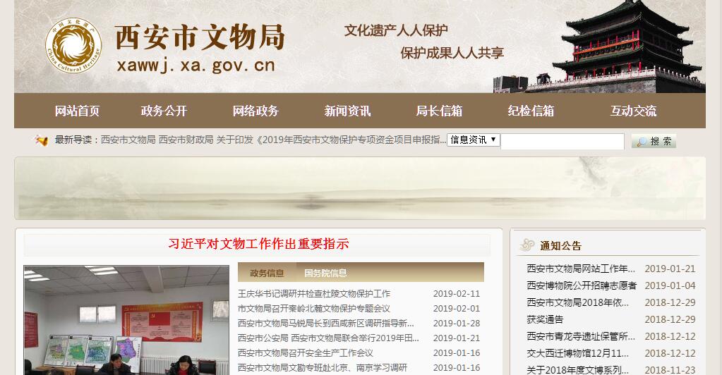 西安市文物局主要职责:(一)贯彻执行文物、博物馆事业发展方面的法律法规和方针政策;起草有关地方性法规和规章草案,拟订全市文物、博物馆事业发展规划,并组织实施。(二)组织文物资源调查,指导和协调全市文物保护工作,履行文物行政执法督察职责,依法组织查处破坏文物的违法行为,配合有关部门查处文物犯罪的重大案件。(三)负责世界文化遗产管理及保护项目的相关审核、申报工作;会同有关部门负责全市历史文化名城(镇、村)的申报、保护和监督管理工作。(四)负责市级以上文物保护单位的审核、申报工作;负责审核、审批或申报全市文物保护、考古发掘、古建筑维修项目,指导并检查全市文物古迹建筑修缮方案编制和组织实施工作;指导、监督全市文物遗址公园的保护管理与建设工作。(五)指导、督促、检查全市文物和博物馆业务工作;开展文物对外交流,协调博物馆间的交流与合作;负责文物进出境的审核、报批工作。(六)负责全市文物和博物馆有关审核、申报工作;依法监督和管理文物的流通,负责文物复制品管理、流散文物征集、文物鉴定等工作。(七)管理文物保护专项经费并监督使用。(八)负责统筹规划全市文物、博物馆专门人才的培养;组织指导文物、博物馆方面的科研工作;组织开展文物保护宣传工作。(九)负责全市文物相关产业发展项目的有关协调、组织、实施及管理工作。(十)承办市政府交办的其他事项。