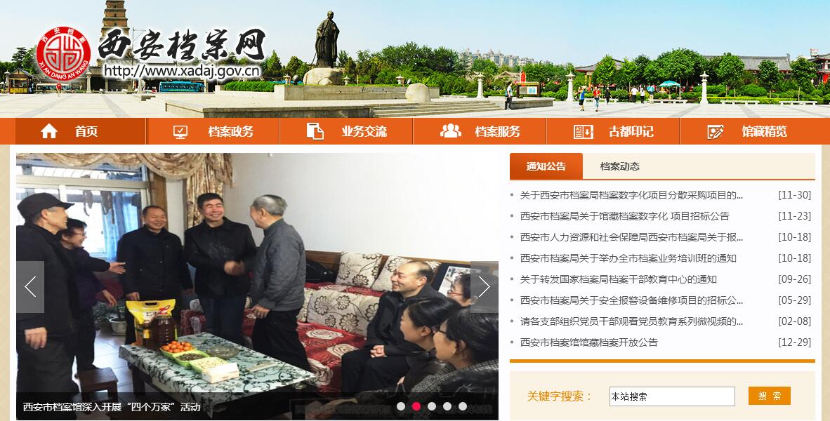 | 网站简介: 西安市档案馆(局)主要职责:(一)贯彻执行党和国家关于档案工作的法律、法规和方针政策。(二)对全市档案工作实行统筹规划,宏观管理,拟定本市档案工作法规和行政规章,制定本市档案事业发展计划和档案工作规章制度,并组织实施。(三)对本市各级各类档案馆及党政机关、群众团体、企事业单位的档案工作进行监督、检查和指导。(四)组织并指导本市档案理论与科学技术研究,指导市档案学会工作。(五)组织并指导本市档案宣传、档案教育及档案干部的业务培训工作,负责本市档案专业技术职务的评审工作。(六)收集市级党政机关、群众团体及有关组织和企事业单位的重要档案资料进馆保存,实行集中统一管理,保守党和国家机密,维护档案资料的完整与安全。(七)负责馆藏档案资料的整理、编目、鉴定、统计和提供利用工作。(八)负责档案史料的公布、开放、编纂、出版、发行工作,参与编史修志工作。(九)负责本市档案信息化建设,开发档案信息资源,对社会进行宣传教育,为社会各界提供服务。(十)承担市委、市政府交办的其他工作。 |
