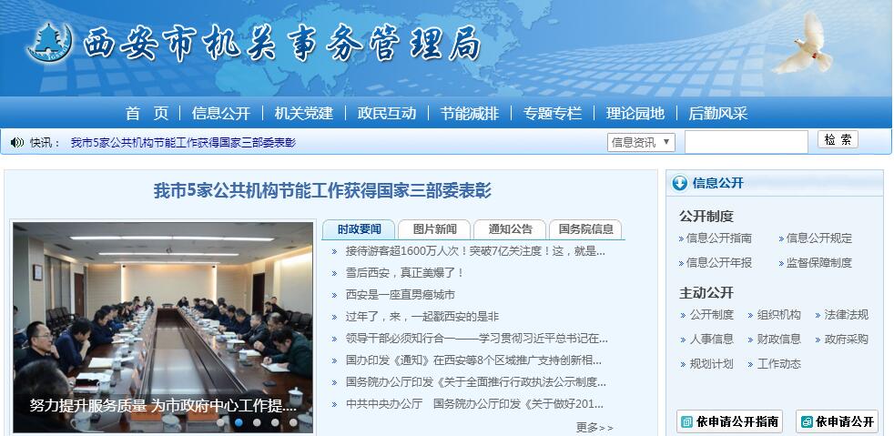 根据《中共陕西省委办公厅、陕西省人民政府办公厅关于印发〈西安市人民政府职能转变和机构改革方案〉的通知》(陕办字[2015]44号),设立西安市机关事务管理局,为市政府工作部门。其主要职责:(一)贯彻落实机关事务管理工作的有关政策、法规,拟定机关事务管理与服务有关政策措施,并组织实施。(二)负责市级机关办公用房的建设、维修和产权产籍管理;负责市级党政机关、人民团体和事业单位办公用房违规建设、使用的核查清理工作。(三)负责市政府机关事务管理和服务保障工作;承担市政府办公区的治安保卫和消防安全管理责任;负责拟订市级机关物业管理的相关规定和制度,并监督实施;负责市政府办公区环境卫生和公共设施管理工作。(四)拟定公务用车改革有关政策措施,承担全市公务用车改革和管理工作;负责全市公务用车使用情况的监督检查。(五)负责制定市级机关、事业单位厉行节约、反对浪费成效评估办法,组织实施检查考核。(六)负责全市公共机构节约能源资源工作;会同有关部门对全市公共机构节能管理进行规划,制定有关制度并组织实施。(七)负责市政府办公区、市政府政务服务中心、市应急指挥中心(电子政务中心)、城市规划展览馆,综合服务楼及武警营区后勤保障专项经费的预算和使用管理等工作。(八)负责市政府办公区社会化服务管理工作。(九)负责市政府重要会议和大型活动的服务保障工作。(十)指导、监督区县机关事务和公务用车改革管理工作。(十一)承办市政府交办的其他事项。