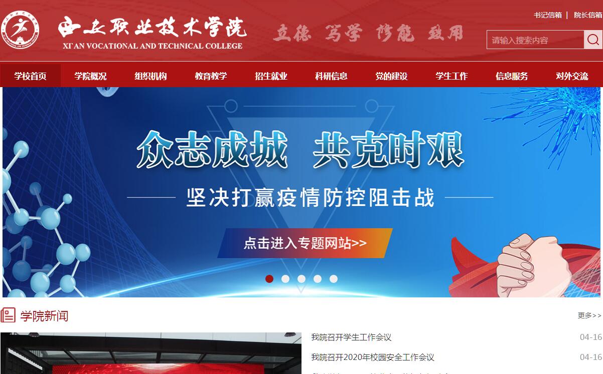 西安职业技术学院是经陕西省人民政府批准,教育部备案,西安市人民政府举办的一所综合类全日制高等职业技术学院。学院在长期办学实践中,为国家培养了数以万计的生产、建设、服务和管理第一线的高素质劳动者和技术技能人才,在社会中有着广泛的影响和良好的声誉。学院被省高教工委授予省教育系统“文明校园”称号,被市教育局授予市教育系统精神文明建设“最佳单位”称号,被市委、市政府授予“文明校园”称号,学院是教育部现代学徒制试点建设项目单位、陕西省创新创业教育改革试点系院。学院地处西安高新技术产业开发区,紧邻西北首家新型都市工业示范园,占地面积382亩,设有机电工程系、经济管理系、财政金融系、生物工程系、建筑工程系、电子信息工程系、动漫软件与教育学院、继续教育学院、基础课部9个教学系(院、部),教职工521人,在校生9000余人。学院现开设三年制高职专业43个,其中建筑工程技术为中央财政支持建设专业,动漫制作技术为省级一流专业建设项目,有电气自动化技术、建筑工程技术、电子信息工程技术、物流管理、电子商务等5个省级一流专业培育项目,有机电一体化技术、会计等5个省级重点专业,3个省级专业综合改革试点项目,形成了以装备制造业为主体,信息技术产业和现代服务业为两翼,新能源技术、建工技术、文化创意和生物制药为驱动的一体两翼的多轮驱动的专业构架。学院紧密围绕区域产业,注重实践教学,大力开展校企合作、订单培养,合作单位依托3大国家级开发区、遍布省内外。先后与三星电子、西安地铁、中国航天集团等百余家企业签订长期合作协议,学院现有实验实训室 101个,校外实习实训基地116个,其中动漫设计与制作生产性实训基地、建筑工程技术实训基地、机电类实训基地为省级示范实训基地。学院与阿里云、慧科集团三方联合共建阿里云大数据应用学院,致力于培养更多符合行业企业需求的应用型人才,支撑西安以及整个西部区域大数据产业发展。学院积极与国外高等院校、教育机构陆续实施多项合作办学项目,与英国奇切斯特学院、英国沃灵顿大学、韩国又松大学加强合作与交流,拓展人才储备基地,形成了“优势互补、互惠互利、动态运行、有序发展”的合作模式。学院坚持“人文素养润德,职业标准砺能”的办学理念,近年来,职业技能大赛、大学生科技文化艺术节、社团文化节、旅游文化节、女生节、神农文化节、动漫节、鲁班文化节、电子科技节等品牌活动培育成型。近两年,我院师生在职业技能大赛、高职院校教学信息化大赛等众多领域获得集体和个人荣誉共计208项,其中国家级28项,省级126项,市级54项。学院以服务为宗旨、以就业为导向,在提升学生综合素质的同时,引导、服务学生成功就业,通过一系列卓有成效的措施,推动学生就业工作扎实向前迈进。学院与国内百余家大中型企事业单位建立了长期、稳固的用人合作关系,人才输出立足陕西,面向全国, 2017届毕业生就业率达97.62%,毕业生以其优良的素质、扎实的专业理论基础和娴熟的职业岗位技能深受用人单位的欢迎和好评。学院目前是“国家高技能人才培养基地”、“全国物流职业教育人才培养基地”、“陕西省动漫人才培养基地”、“西安高新技术产业开发区技能人才培养基地”、“西安市机电类公共实训基地”、“西安市退役士兵培训基地”和西安市创(就)业培训定点机构,承担多个工种的高级技能鉴定工作。学院在建设过程中,省市领导先后来校指导工作,市委、市政府多次研究学院改革发展。如今,学院已建成为西安市规模大、专业门类多的特色高职院校。薪火相传,桃李芬芳,站在新的起点上,学院将深入学习贯彻十九大精神和习近平新时代中国特色社会主义思想,切实践行中省市教育工作会议精神和学院“十三五”发展规划,用智慧和汗水描绘教育发展的新画卷,谱写西安职业教育的新辉煌,为西安建设国际化大都市做出新的贡献。