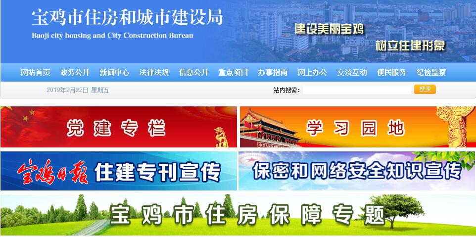 宝鸡市住房和城市建设局是2010年市政府机构改革时,由原市城市建设局、市房产管理局合并后新组建的市政府组成部门。内设14个科室,下属8个事业单位、12个企业单位。内设机构主要有办公室、人事教育科、财务审计科、政策法规科、投资计划科、工程科、公用事业科、节约用水科、房产房政科、物业管理科、开发建设科、住房信息科、住房保障科等。其主要职责:(一)贯彻执行有关住房保障、房地产市场、物业管理、市政、公用事业的法律法规和方针政策,维护社会稳定;拟订有关规范性文件,拟订中长期规划和年度计划,并组织实施。(二)负责全市房地产市场管理,负责房地产转让、抵押、租赁、拍卖、置换等市场行为;负责房地产中介服务、价格评估、合同备案等管理工作,负责商品房预售管理,核发商品房预售许可证,开展房地产广告真实性审查。(三)负责房地产行业管理,指导和管理房地产开发和经营活动;负责房地产开发企业、房地产评估机构、房地产经纪机构和物业服务企业的资质管理。(四)负责全市住房制度改革和住房保障工作;负责市区直管公房的资产管理工作;负责保障性住房建设管理和分配。(五)负责全市物业服务行业管理和房屋维修资金管理工作。(六)负责城市房屋安全鉴定工作,组织开展危险房屋鉴定,指导危险房屋治理工作。(七)负责编制城市住房、市政基础设施、公用事业建设、维护年度投资计划及其资金管理;负责市政投资计划的组织实施;指导公用事业投资计划的实施。(八)负责城市道路、排水、桥梁、隧道等市政基础设施以及供水、供气、供热等公用设施的项目建设、维护和审批工作;负责城市主、次干道路的挖掘、占用审批。(九)负责市区供水、节水、污水处理等管理工作;审查、报批市区供水、节水、污水处理等工程设计、施工方案并参与竣工验收;负责市区供水水源的论证、开发和引水工程建设;负责特种行业用水的审批和管理;负责供水、节水、污水处理等企业的资质认证和报批工作。(十)负责城市供热、燃气等公用事业的行业管理工作;负责城镇供热、城乡燃气等行业资质、特许经营管理工作。(十一)承办市政府交办的其他事项。