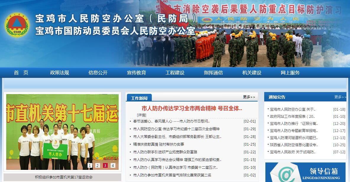 根据《中共陕西省委办公厅陕西省人民政府办公厅关于印发〈宝鸡市人民政府机构改革方案〉的通知》(陕办字〔2009〕89号),设立市人民防空办公室,为市政府工作部门(宝政办发〔2010〕134号)。其主要职责:(一)贯彻执行人民防空方面的法律法规和方针政策,维护社会稳定;拟订有关规范性文件,并组织实施。(二)拟订全市人民防空工程建设规划、计划;审批人防工程的立项、预算、决算、验收,负责和指导人民防空工程(含防空地下室)质量监督、定额管理等工作。审批结合民用建筑修建防空地下室行政许可,负责和协调指导已建人民防空工程维护管理及临战前的工程保障工作。(三)会同有关部门审批人民防空工程建设与城市建设相结合的规划,审核城市总体规划贯彻落实人民防空要求及人民防空建设规划情况,依法对城市和经济目标的人民防空建设进行监督检查。(四)负责防空地下室建设和城市地下空间开发利用兼顾人民防空防护要求的管理和监督检查,会同有关部门搞好城市地下空间的规划、开发利用和审批工作。(五)拟订和修订人民防空城市防空袭预案及相关保障方案。(六)拟订全市人民防空通信、警报建设规划,负责全市人民防空指挥通信网络建设和战备执勤。(七)负责全市人民防空信息系统建设管理工作;审批市级以下人民防空信息系统建设规划、计划。(八)平时指导全市城市群众防空组织的组建和训练,战时组织开展城市人民防空袭斗争。(九)协调利用人民防空系统设施和资源参与突发公共事件应急处置,承担政府赋予的防灾救灾任务。(十)制定全市人民防空防灾宣传教育计划;指导开展人民防空防灾知识教育;组织人民防空防灾干部教育培训,开展人民防空防灾科学技术研究。(十一)管理人民防空经费和人民防空国有资产;编制人民防空经费预算决算,并对使用情况实施监督检查。(十二)拟订全市人民防空平战结合发展规划,指导全市平战结合工作。(十三)承担市国防动员委员会人民防空办公室日常工作。(十四)完成市政府、宝鸡军分区交办的其他事项。