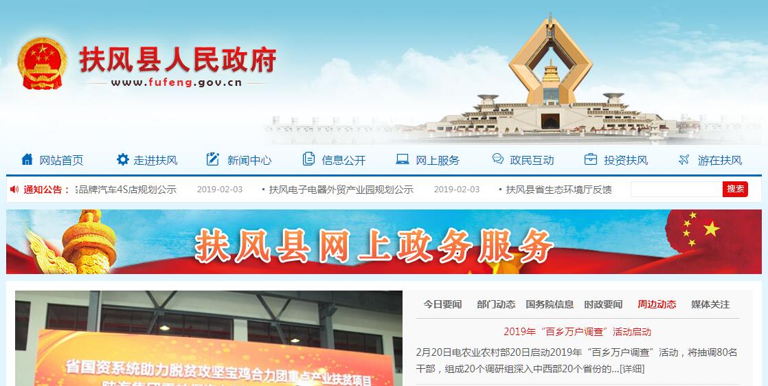 扶风县地处关中平原西部,隶属于陕西省宝鸡市,是宝鸡的东大门,因“扶助京师、以行风化”而得名,是西周文化的发祥地、佛教名刹法门寺的所在地,全县辖7镇1街113个行政村,9个社区,面积720平方公里,人口45万。先后荣获中国旅游强县、国家卫生县城、国家园林县城等荣誉称号。 区位开发优势明显 扶风位于省会西安和陕西工业重镇宝鸡黄金分割点,同处1小时经济圈,3条国省道直达西安、宝鸡。境内陇海铁路、西宝高铁、连霍高速、法汤高速、西宝中线、西宝北线、法乾二级旅游专线、关中旅游环线贯穿全境,西安咸阳机场至法门寺、西安至法门寺2条城际铁路已启动修建。扶风地处暖温带,属大陆性半湿润气候。年平均气温12.4℃,无霜期209天,全年日照2134小时,年均降水量592毫米。境内生态环境良好,七星河国家湿地、渭河“百里画廊·十里花海”、野河山生态景区成为三张生态名片。境内有8座水库、9条河流、2条主干渠,地下水资源丰富,水质优良。北部乔山是天然的动植物资源宝库,森林面积8.4万亩,石灰石储量15亿立方米,地热资源储量2.2亿立方米,极富开发利用价值。截至2016年,扶风县下辖1街7镇,全县户籍人口45.28万(2015年)。实现地区生产总值108.16亿元,其中,第一产业增加值21.06亿元,第二产业增加值55.36亿元,第三产业增加值31.74亿元。全县三次产业结构为19.5:51.2:29.3。按常住人口计算,人均生产总值25609元。文化旅游资源丰富 扶风是西周文化的发祥地、佛教名刹法门寺的所在地,素有“周礼之乡”“青铜器之乡”和“佛骨圣地”的美誉,是中外闻名的周原文化宝库、万众朝拜的佛教圣地。境内有各类文物保护点453处,其中国家和省级重点文物保护单位18处。