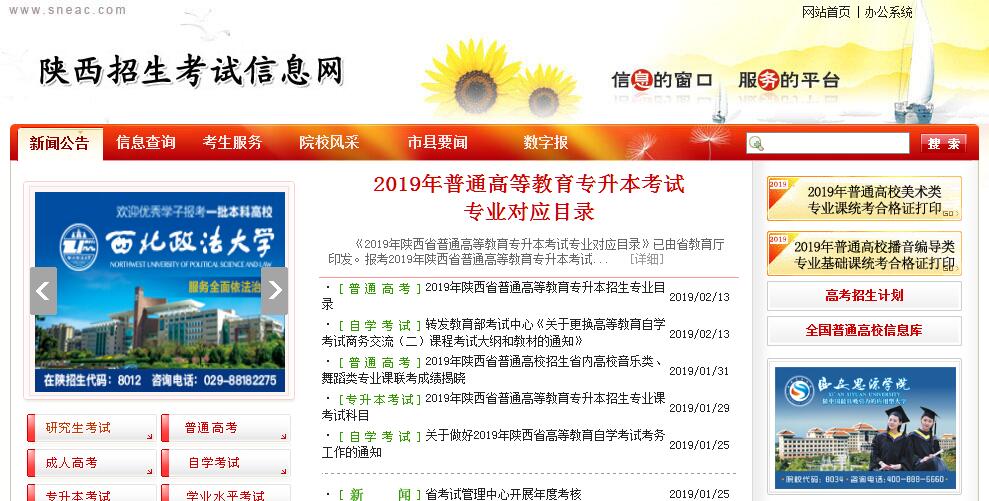 | 网站简介: 陕西招生考试信息网是陕西省向考生和家长发布考试信息的官方网站,设置了研考、高考、成人高考、自学考试、中专与会考、公共英语、少儿英语考试、计算机等级考试、少儿计算机考试、专升本考试等11个专业栏目,涵盖高考、考研、成人高考等各类招生考试的内容。陕西省考试管理中心是省编委会1990年6月批准设立的副厅级事业单位。陕西省招生委员会办公室、陕西省高等教育自学考试委员会办公室分别作为陕西省招生委员会和陕西省高等教育自学考试委员会的常设办事机构,与陕西省考试管理中心一套机构、三块牌子。主要负责全省国家和省级教育招生考试工作,行使招生考试工作的行政管理职能。内设综合处、研究生招生处、普通高校招生处、成人高校招生处、自学考试处、中等教育考试处、社会考试处、命题一处、命题二处、信息技术处、考籍处等11个处。下设招生考试报社,全国高等教育自学考试指导委员会西安命题中心(与命题二处合并办公)。 |