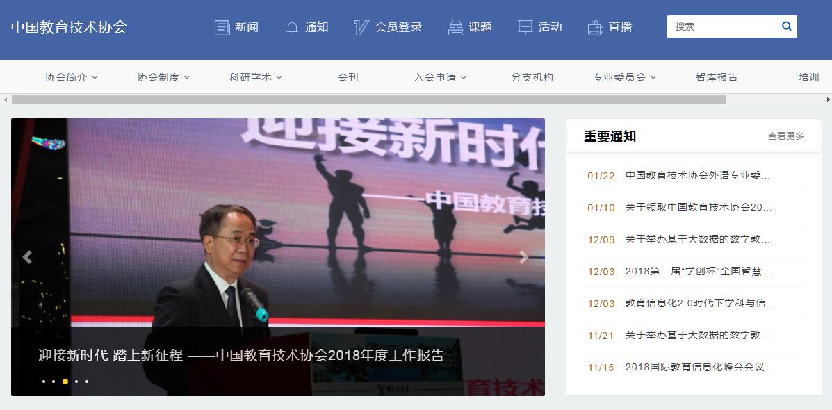 中国教育技术协会(China Association For Educational Technology ,CAET)成立于1991年,原名中国电化教育协会,是经教育部批准,民政部备案的国家一级社团组织。业务主管单位是中华人民共和国教育部,登记机关为中华人民共和国民政部,本会接受教育部、民政部的业务指导和监督管理。2002年11月,经教育部、民政部批准,中国电化教育协会改名为中国教育技术协会,成为教育信息化领域唯一的国家级行业协会。她的宗旨是:贯彻党和国家关于教育和教育信息化工作的方针、政策,为政府、企业、学校、研究机构搭建从事教育信息化和教育技术研究、应用和实践的平台,为企业开拓国内外市场,发展教育信息化产业,为会员服务。引领行业创新,实现教育公平,提高教育质量,促进教育均衡发展,为国家教育现代化做出贡献。她的成员覆盖了高等教育、基础教育、职业与成人教育四大领域的全国各级各类学校、相关管理机构和社会组织、企业等机构。现有省、部级团体会员102个,各级会员组织几千个。中国教育技术协会设立学术委员会和技术标准委员会,由中国知名教育技术专家、信息技术专家组成。协会下设高校远程、高等农业院校、外语、体育、金融、医学、中医药、虚拟仿真、职业教育、中小学、中学教育信息化、教育游戏、影视传媒、电影教育、教育康复、创新教育实践工作委员会、智慧教育工作委员会等35个分支机构,具体负责在本系统、本专业开展工作。协会成立以来,一直积极推动社会各界关心重视、支持教育技术工作;协调和组织教育技术研究,举办各种学术活动,推广、交流教育技术理论及技术、设备研究的成果和经验;为教育行政部门对教育技术的决策提供咨询服务和行业管理;培训教育技术有关管理干部、教师、理论研究人员和技术人员;编辑出版书刊和资料,交流教育技术信息;举办专业展览;加强与有关国际组织的联系,开展学术交流活动;接受教育部委托的任务。近年来,随着教育信息化的飞速发展,协会陆续吸收教育信息化优秀企业会员,向全国各级各类学校推广新技术,新产品和优秀教育教学模式,努力推动校企合作、政企合作,搭建教育信息化政、用、产、学、研桥梁,制定教育技术和教育信息化领域行业标准,为国家推进教育信息化落地实施做出卓越的贡献。