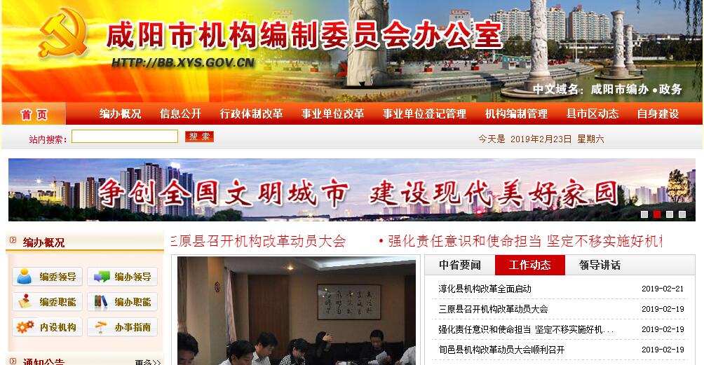 咸阳市机构编制委员会办公室主要职责:(一)贯彻执行国家和省上关于机构编制管理和行政管理体制改革工作的方针、政策和法规,拟订我市机构编制管理规范性文件和规章制度,并监督落实;统一管理全市各级党政机关、人大、政协、法院、检察院机关,各民主党派、人民团体机关的机构编制工作。(二)拟订全市各级行政管理体制和机构改革的总体方案,审核市级机关各部门和各县市区及镇(办)机构改革方案,指导全市各级行政管理体制和机构改革工作。(三)组织实施全市行政审批制度改革工作。负责落实国务院、省政府取消和下放的行政审批事项,推进市级行政审批制度改革工作,审核市级行政审批事项并提出保留、下放和取消的意见。负责推行权力清单和责任清单制度工作。(四)审核市级机关各部门的职能配置、机构调整和职责划分。协调市级部门之间和市级部门与县市区之间的职责关系。(五)负责拟订市级机关编制总额分配方案,审核市级机关机构设置和人员编制调整及科级以上领导职数;审批市级机关各部门科级内设机构、领导职数及人员结构比例。(六)审核县级党政群机构设置;拟订县镇(办)机关的行政编制总额分配方案;审批县级人大、政协、法院、检察院及镇(办)机关的机构设置。指导县镇(办)事业单位管理体制改革和机构编制管理工作,审批县镇(办)事业单位机构设置、人员编制、领导职数和事业编制总额调整。(七)拟订全市事业单位管理体制和分类改革方案,组织实施事业单位分类改革工作;拟订事业单位机构编制管理的规章制度和办法;审核市属事业单位的机构设立和调整、人员编制、人员结构比例和领导职数及经费管理形式;审批市属副县级以上事业单位内设机构的设立、调整和领导职数等事项。(八)参与有关体制改革的调研和方案的拟订工作;承办报送市委、市政府有关地方规范性文件和规章制度中涉及机构编制事宜的审核修改工作。(九)贯彻落实《事业单位登记管理暂行条例》及其《实施细则》,负责市级事业单位登记管理工作,依法监督指导县市区事业单位登记管理工作。负责推进全市事业单位法人治理结构、中文域名注册和网站标识管理工作。(十)负责建立和完善机构编制与组织、人社、财政等部门协调配合约束机制,全面实行机构编制实名制管理。坚持完善控编通知单等管理制度,审核市级机关、事业单位人员招录(聘)计划,审批县镇机关、事业单位人员招录(聘)计划。(十一)监督检查全市各级机构改革及机构编制管理规定的执行情况,负责推进全市各级机关、事业单位控编减编工作。(十二)负责联系省上垂直管理部门的有关机构编制事宜。(十三)依据政府信息公开条例,推进政务信息公开,建立健全机关政务信息公开工作制度,面向社会公开有关政务信息。(十四)承办市委、市政府和市机构编制委员会及上级业务部门交办的其他事项。