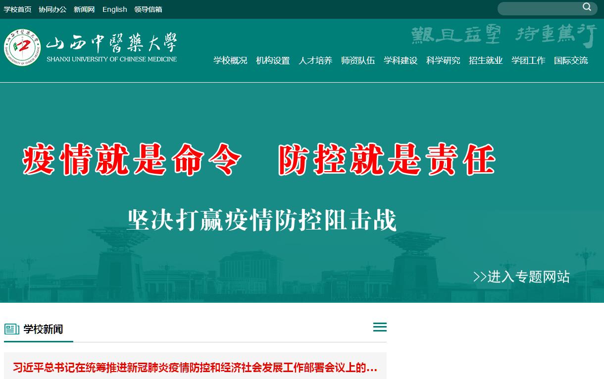 山西中医药大学的前身为1978年创办的山西医学院中医大学班,1989年经原国家教委批准成立山西中医学院,2017年5月经教育部批准正式更名为山西中医药大学。2001年开始招收硕士研究生,是山西省人民政府与国家中医药管理局共建高校、教育部首批卓越医生(中医)教育培养计划改革试点高校、推荐优秀应届本科毕业生免试攻读研究生高校、中医学专业“5+3”一体化招生院校、中国政府奖学金生委托培养高校,山西省深化创新创业教育改革示范高校。经过办学40年(办校29年)的建设发展,学校现已建成为一所以中医药学科为主,具有鲜明中医药特色、产学研医紧密结合的高等中医药院校,是山西省中医药人才培养、科技创新、医疗及社会服务、文化传承和对外交流的中心。学校基础设施完善,办学资源充足。现有太原、晋中2个校区,占地958亩。晋中校区建筑风格独特,庄重典雅,环境优美,建有中医药文化浮雕、傅山雕塑、上湖、神农药谷等文化景观,充满浓郁的中医药文化元素,是全国中医药文化宣传教育基地。学校教学科研仪器设备总值达13358万元,馆藏纸质图书92.2万册,电子图书281.4万册,各类数据库40个,建立了性能先进的现代电子图书系统和计算机网络服务体系。学校人才培养体系较为完备,办学质量稳步提升。2007年,以良好成绩通过教育部本科教学工作水平评估。2014年,高水平通过教育部中医学专业认证。学校下设14个二级教学机构,开办有21个本科专业,涵盖医、理、工、管、农等多个学科门类。现有国家特色专业建设点1个、教育部本科专业综合改革试点1个,山西省品牌专业3个、山西省高校特色专业建设项目4个,山西省高等学校优势特色专业建设项目2个,山西省人才培养模式创新试验区1个。学校为山西省唯一的博士学位授予单位(点)立项建设高校,有中医学、中药学2个一级学科学术学位硕士授权点,中医、中药学、护理3个专业学位硕士授权点。现有全日制在校生9616人,其中研究生748人。学校教师队伍结构合理,师资力量实力雄厚。现有教职医护员工3000余人,其中专任教师642人,具有高级专业技术职务的教师441人,其中正教授155人。现有国医大师2人,“新世纪百千万人才工程”国家级人选1名、教育部新世纪优秀人才2人,国家级教学名师1名,全国名中医3名,双聘院士2人,博士生导师23人,享受国务院特殊津贴专家18人,全国老中医药专家学术经验继承工作指导老师10人,全国中医药优秀临床人才4人,山西省青年科学家1人、山西省“百人计划”人才5人,山西省新兴产业领军人才1人、山西省高等学校中青年拔尖创新人才2人、山西省高等学校优秀青年学术带头人2人,山西省学术技术带头人12人,山西省教育厅“131”领军人才17人,山西省教学名师14人,山西省名老中医18人,山西省名医23人,首批山西省老中医药专家学术经验继承工作指导老师25人,山西省卫生人才培养工程高端领军人才31人,傅山学者4人。学校学科特色鲜明,科研基础坚实。现有山西省重点学科2个,山西省特色重点学科1个,山西省重点建设学科(一级)1个、(二级)1个,山西省“1331工程”优势特色学科(一级)1个,有12个学科方向被确定为国家中医药管理局“十一五”、“十二五”中医药重点学科,14个学科方向被确定为山西省卫生厅中医药重点学科。学校是国家中药现代化科技产业(山西)基地、国家国际科技合作基地、国家中医药科技合作基地,现有省高校协同创新中心2个、山西省高校人文社会科学重点研究基地2个、省部级以上重点实验室6个、21个省部级以上研发与科技服务平台、省级科技创新团队5个、山西省“1331工程”重点创新团队1个。2个实验室和1个工程研究中心入选山西省“1331工程”重点实验室、工程(技术)研究中心、产业技术创新研究院(战略联盟)建设计划。学校学术气氛活跃,对外交流广泛。积极服务国家“一带一路”倡议,作为首批中医药院校加入“一带一路”高校联盟,招收沿线国家留学生140余名。连续多年承办商务部举办的国际针灸技术培训班,与英国、澳大利亚、新西兰、日本、韩国等20余个国家的学术机构建立良好合作关系。学校与振东集团、澳大利亚阿德莱德大学联合建立了中-澳分子中医药学研究中心,是我国第一个以国际化产学研联合模式设在西方著名综合大学的中医药联合研究中心,被科技部认定为国家级国际联合研究中心。学校还与江西中医药大学、黑龙江中医药大学与阿德莱德大学共同组建的“全球传统医学研究院”,围绕中药农业、中药创新药物与健康产品研制、制药工程等领域开展研究。学校积极探索校地、校企合作模式,分别与晋中市人民政府、山西振东实业集团有限公司等25个地方政府和企业签署了战略合作协议。学校医疗特色显著,服务能力较强。现有4所三级甲等直属附属医院。附属中医药研究院是省内中医药领域规模最大、水平较高、综合实力最强的集医疗、科研、教学为一体的中医医疗机构。附属第二中医院是一所综合性中医院,中医特色突出,综合实力较强,是全国中医院中医药文化重点建设单位;附属第三中医院是全国仅有的两所三级甲等针灸专科医院之一,是中国中医药研究促进会针灸康复分会主任委员单位,其新九针技术享誉国内外;附属中西医结合医院是国家中医药管理局中西医结合重点建设单位,医疗设备先进,综合实力雄厚