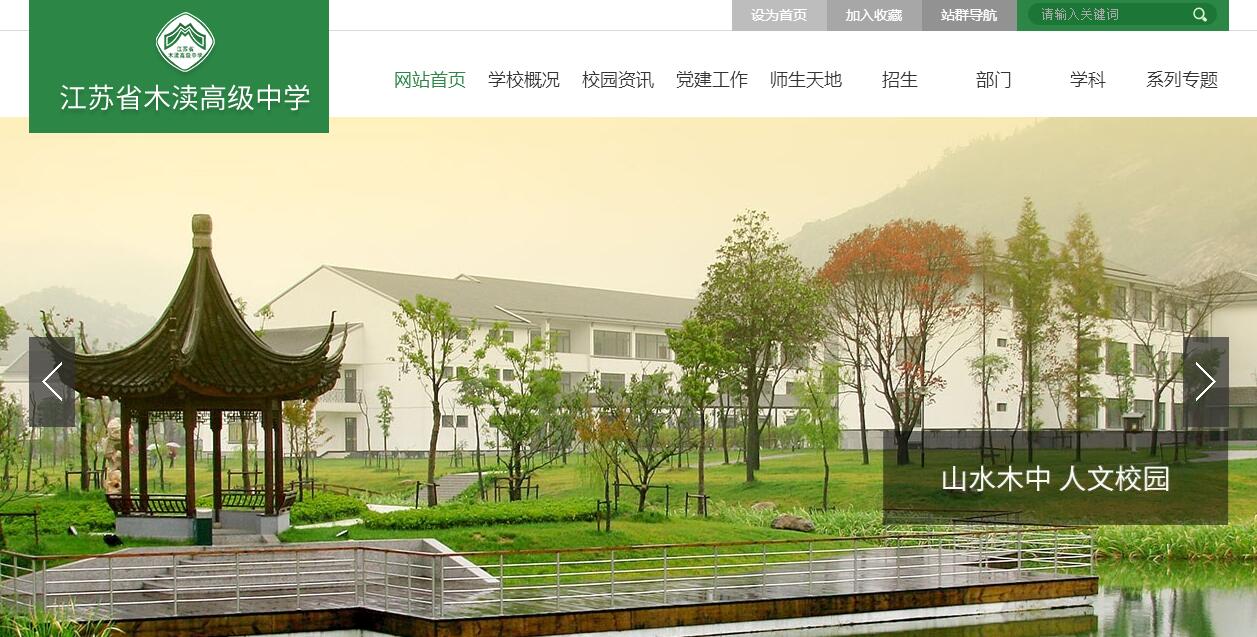 江苏省木渎高级中学位于木渎镇灵天路588号,处于苏州市著名的天平山、灵岩山风景区的三级保护区内,占地508亩,总建筑面积9万1千平方米,总投资2.5亿。它是一所既有江南园林风格、又有浓郁现代气息的,规模宏伟、设施一流的开放型、生态化、网络化学校。学校曾先后荣膺国家级示范高中、江苏省模范学校、省首批四星级高中、省首批文明学校等殊荣,连续八届(16年)荣获江苏省文明单位称号,是遐迩闻名的“江南名校”。学校现有48个班级,1862名学生,全校教职工282人,其中教授级高级教师2人,特级教师4人,高级教师137人,中学一级教师103人。校长张飞是江苏省人民教育家培养工程培养对象,江苏省教授级中学高级教师、江苏省特级教师、苏州市教育名家、苏州教育首届领军人才、江苏省优秀班主任等;被聘为江苏省教育学会物理教育专业委员会理事、苏州市物理学会理事、人民教育出版社讲师团专家成员、苏州大学物理教学硕士专业学位研究生导师、苏州市物理(由特级教师、教授级高级教师、名教师组成的)名教师名校长发展共同体主持人、苏州大学物理与科技学院兼职研究员、苏州科技大学兼职教授。党总支书记黄生元同志是吴中区名教师,苏州市名教师。步入新世纪以后,学校与时俱进,开拓创新,以“把我校建成省内一流,国内知名,国际可比的开放型的现代化学校”为奋斗目标,以“以人为本,传承文明,以研导行,开拓创新”为教育理念,以深厚卓然的学校文化形象固本,以为社会所称道的教师职业素质从教,以培育经得起历史检验、适应社会的一流学生立足,在教师队伍建设、教育教学研究、现代化教育工程等方面作出了开创性的贡献,素质教育水平和文化品位得到了全面的提升。在多年的办学实践中,学校凸现了鲜明的办学特色:学科建设创品牌,奥赛工作求突破。形成了特有的传统优势:强化科研求发展,借助专家上层次,依托高校办名校。学校按照“面向世界、面向未来、面向现代化”的要求,狠抓师资队伍的建设,从而形成了一支教学功底扎实、教学经验丰富、教学水平高超、教学作风踏实的教师队伍。拥有张飞、李建邡、胡长树、钱家荣等多名特级教师,89位各级名教师和学科教改带头人。一大批青年教师在全国、省、市各科评课选优及基本功竞赛中获一、二等奖。在办学体制上,学校积极探索办学新路,办学渠道日渐拓宽。与中国科学技术大学合作,顺利举办“培东实验基地”和“培东实验班”,积极探索精英人才培养模式;《生物多样性探究》于2011年成功申报为江苏省普通高中课程基地建设项目;近几年国际交流与合作的步伐进一步加快,与加拿大合作实施的中加双学历教育,有效拓宽了学生的成才渠道。为推进教育教学改革,学校先后制定了《专任教师考核条例》、《综合素质评价方案》等一系列职责考核条例,从而完善了各项考核制度,形成了较为可行的各类评价体系。学校不断进行教学改革,努力创设民主、平等、和谐的教学环境,积极探索“高效课堂,有效作业”新途径。在教学方式上倡导互动性教学,在学习方式上倡导反思性学习。积极推进信息技术与学科课程的整合,探索网络环境下的教学改革,取得了较丰富的成果和经验,其中3位青年教师荣获全国信息技术与课程整合竞赛一等奖,1位获二等奖。学校提出了“一手抓教学质量生命线,一手抓特色教育风景线”的口号,专设学生发展指导中心,负责高校自主招生和奥赛等工作,各级各类学科竞赛成绩卓著,生物奥赛更是异军突起,名列江苏省前茅。近三年有300余人次获省级竞赛奖项,130多人次获全国级竞赛奖项,8人进入国家冬令营。2008年7月,鲁昊骋同学勇夺第十九届国际生物奥林匹克竞赛金牌; 2013届任豪同学成功入围生物奥林匹克国家集训队,并被清华大学提前录取。学校被授予省数学奥林匹克培训基地称号。学校大力倡导“务实科研”,努力贯彻“以研导行”策略,先后两次编辑出版校本教材《智力开发读本·新课程新学案》40余册,另开发出版《新大纲·新高考探秘》《体育与健康》等五种校本课程。近三年来,教师在各级报刊杂志上发表论文800多篇,著书30余种,课题研究20多项。学校努力建设数字化校园,学校网站被评为苏州市十大优秀校园网站,一线教师人手一台电脑,并实行联网,实现优质资源共享。学校依托天平山这一特定的地域环境和范仲淹故里这一特定的人文环境,以“公平竞争,先忧后乐”作为学校的文化内涵,以训诫学子既要通过“公平竞争”来实现自我价值,又要培养自已责无旁贷的社会责任感。随着学校的发展,木中人正进一步追求高品位、精致化的管理,在保持学校原有特色的基础上进一步深化和提升其文化内涵。学校的近期目标是:同心同德,负重拼搏,务真求实,开拓创新,争创江苏省首批高品质高中。