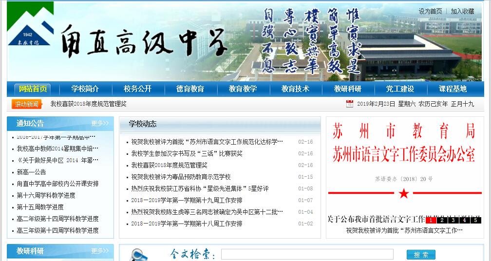 苏州甪直中学创办于1942年9月,初名“私立甪直初级中学”。1945年更名为“私立鲁望中学”。1956年8月改为公立,易名为“吴县甪直初级中学”。1958年9月增设高中部成为完全中学,更名为“吴县甪直中学”,并逐年增添校舍设备。1998年向南扩建4幢教学楼和运动场并成为新的主要教学区,加之北区向东征地30亩,占地面积增加到160亩,建筑面积32484平米;2000年4月创建为江苏省重点中学,2004年3月转为江苏省三星级高中,荣获省、市、区荣誉和称号200余项。2002年新建初中部的“鲁望楼”,2003年9月实施一校二部管理模式,初中部、高中部分别居于河之北南,时有班级66个,学生3500余名,全校有专任教师237名。2010年9月开始,根据新的形势和社会的期待,新一届学校班子成员,反复推敲学校的规划和发展,仔细研究学校的优势和特色,积极筹划易地新建高中并实施初高中的分离。方案形成后,向省、市、区、镇各级部门努力争取,通过历届校友的积极呼吁,2011年初该方案通过镇人代会正式成为用直镇实事工程,2012年初纳入区实事工程,并正式启动各项前期工作。新建高中占地约150亩,建筑面积约50000平米,总投资约2.4亿元(不含土地);初中迁入眠牛浸洪南并进行扩建和改建体育馆、食堂、报告厅、塑胶运动场等,新建面积约6500平米,投资约4500万元。新建高中经过了2年的反复寻址论证、规划设计等工作,于2012年9月在张林公园旁正式开工,同年11月,初中改建和扩建也正式开工。2012年11月25日镇政府隆重举办了“角直中学建校70周年”庆典活动,取得了园满成功。2014年8月,新建的高中正式投入使用,高中从原址全部迁入新校开学。高中正式易名为“苏州市吴中区甪直高级中学”,简称“角直高级中学”或“甪直中学”,正对校门的新建道路因直通学校主楼“未厌”楼而被命名为未厌路。新设立的初中命名为“苏州市吴中区甪直甫里中学”,二所学校实现了完全分离并正式运行。甪直高级中学,现有教师109人,有一流的师资,省、市、区名师及学科(学术)带头人26人,高级职称教师41人,硕士研究生29人;区级以上骨干教师74人;有一流的教育质量一综合考试、学业水平测试合格率在99W0以上,高考升学率在98%以上,本科达线率在50%以上,其中“鲁望班”本二率在76%以上;在苏州市“省三星级高中”中均名列前茅。学校被评为江苏省基础教育课程改革先进集体、江苏省一级图书馆、江苏省普通高中新课程实施样一本学校、江苏省科技教育先进学校、江苏省科技教育特色学校、江苏省平安学校等一系列荣誉。新成立的甪直高级中学,秉承甪直中学的优良传统,循着一代师表叶圣陶的“未厌”校训,努力践行叶圣陶先生“教学相长,德才并美”的教育念想,教书育人,立德树人,凝成了具有丰富内涵的“鲁望精神”一“唯实求是,简单高效,朴实无华,专心致志,自强不息”。紧紧依靠全体师生员工,优化管理模式,发扬管理民主,强化工作效益,各方面均取得突破性的成绩,减得了社会各界的广泛赞誉。历史的脚步清晰凝重,文明的传承绵延不息,七十余年来,甪中人用殷殷心血和豪迈气概谱写了育人的长卷,桃李争荣,人才辈出;五湖四海、大江南北、长城内外到处都有甪中学子学习、生活、工作的身影,他们以“严、勤、钻、恒”作风,用勤劳的双手和聪明才智,建设祖国家园,推进社会进步,共创人类文明。今日的甪直高级中学已经唱响了自己的口号:“突破惯性束缚,提高教育质量;抓住历史机遇,提升办学品位;重塑自我形象,更展鲁望雄风;丢掉思维定势,争创江苏名校”。我们多么愿望,我们的学校是一棵不老松,在各级领导、各界友人和全校师生员工的共同培育下,枝繁叶茂,高可擎天!我们多么愿望,我们的教师是一株株长青藤,绿意盎然,生机勃勃,洒下浓荫,荫庇一地春草!我们多么愿望,我们的学生和校友是一棵棵永不枯萎的春草,沐着春光,汲着甘露,展示出最强大、最旺盛的生命力!让我们,携手并肩,团结向前,创造奇迹,书写传奇!