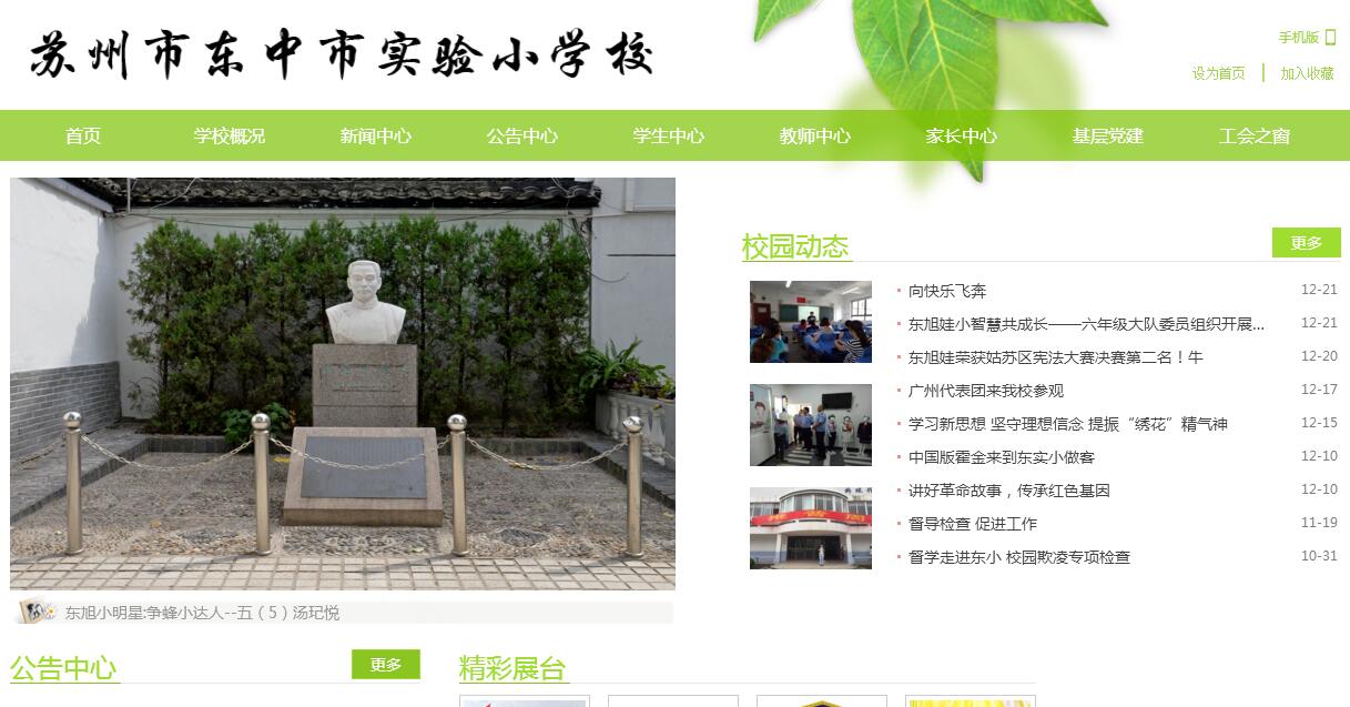 苏州市东中市实验小学位于苏州市中心,创办于1913年,是一所充盈深厚人文底蕴,洋溢浓郁文化气息,拥有鲜明办学特色的知名学校。学校拥有优良的办学传统,形成了明确清晰的办学理念和办学目标。学校秉承“宁朴勿华”的百年校训,深挖内涵,与时俱进, “立而必达”的校风,“导而弗牵”的教风,“疑而生成”的学风,体现了“宁朴勿华”的文化蕴意。近年来,全体师生朝着“宁朴勿华、充盈幸福的省级优质实验小学”的办学目标携手共进,高起点、全方位地追求现代化教育品位,走出了一条“以质量树品牌,以和谐创特色,以素质显亮点”的办学之路。学校关注校园环境建设,整个校园如苏州园林般宁静雅致,让孩子浸润其中得到熏陶。走进校园,听涛石畔泉水叮咚,听莺阁内童音阵阵,宜两亭中书声琅琅,一股宁静古朴之风沁得人心旷神怡。“阊阖大道”、“立雪曲廊”、“之初楼”、“知本楼”、“芹园”、“宜两亭”——楼、路、园、各种景致都赋予独特的名称和寓意,处处洋溢着百年老校浓郁的文化气息,处处体现教育功能。交通文化是学校的一大特色,学校里设置了学生们日常生活常见的交通安全设施和标志,红绿灯、斑马线、环岛、减速带、指示牌等,俨然一个逼真的“小社会”。是学生学会自律,学习做人的好场所。学校于近年全面梳理了办学特色脉络,形成了“进一步加强办学特色建设规划”,并按规划逐步通过“四蜂”评比、东旭少年警校、东旭小博士成长、东旭博物馆之旅、苏式社团等系列特色活动,将学校的办学理念、文化积淀和发展愿景融入师生生活的方方面面,并通过研究、开发、实践、积累,形成了能够将办学特色课程化的相关校本教材,如《东旭小交警》《朴华集》《东旭小百灵》等。学校还把大课间活动——小交警指挥韵律操编写成册,推出校本教材《小交警指挥韵律操》,使小交警校园文化特色与艺术特色紧密结合,不断丰厚校园文化内涵。学校特色日益彰显,学校也荣获江苏省少先队文化建设特色项目奖。学校重视对学生全面素质的培养,充分发挥体艺学科课堂教学主阵地作用,同时不断建设课外体艺兴趣活动和社团活动。学校关注体艺2+1工作,制定切实可行的实施方案。学校组建扬子晚报小记者团和耦耕文学社,让学校的小记者们积极参与校内外各类活动,从学生角度进行新闻报道,让学生在活动中得到锻炼。我们还设立了小蜜蜂俱乐部活动,成立了铜管乐、合唱、舞蹈、戏曲、民乐、泥塑、剪纸、书法、绘画、卡通、航模、机器人、跆拳道、射击、排球、田径、武术等十多个苏式民俗社团,开展多层面、多形式的综合素质实践活动。百年的历史积淀,百年的办学经验,让校园文化在探索中烙上属于东实小特有的印迹,东小学子也似旭日东升,充满朝气和活力,诚挚的欢迎大家到东中市实小来走一走看一看,感受东小古朴优美的校园环境,在东小少年举手投足间体味浓浓校园文化给予的滋养。