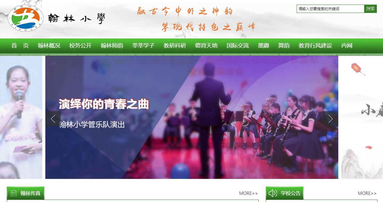 | 网站简介: 在高校林立,人文气息浓郁的苏州工业园区独墅湖科教创新区东南隅,一所环境优美,设施精良的学校亮丽展现,它就是苏州工业园区翰林小学(SIPHLPS)。翰林小学位于科教创新区核心地带,西临风景怡人的独墅湖,毗邻西交利物浦大学、中国人民大学国际学院、南京大学研究生院等中外名校,是科教创新区内第一所公办小学。学校占地约30亩,总建筑面积约13200平方米,设计规模为4轨24班,于2008年6月24日,园区管委会正式批文成立,2008年暑期动工,2009年9月1日正式开学。“放飞童年的梦想,夯实人生的基石”,翰林小学秉承“为培养具有国际化素养的人才而奠基”的现代教育理念,追求传统文化与现代教育的统一。现代化的教育设施,优美的校园环境,和谐的学校氛围,雄厚的师资力量,使得翰林小学成为独墅湖边一颗熠熠生辉的明珠。翰墨凝志,桃李成林。翰林小学,金色的希望在这里启航! |