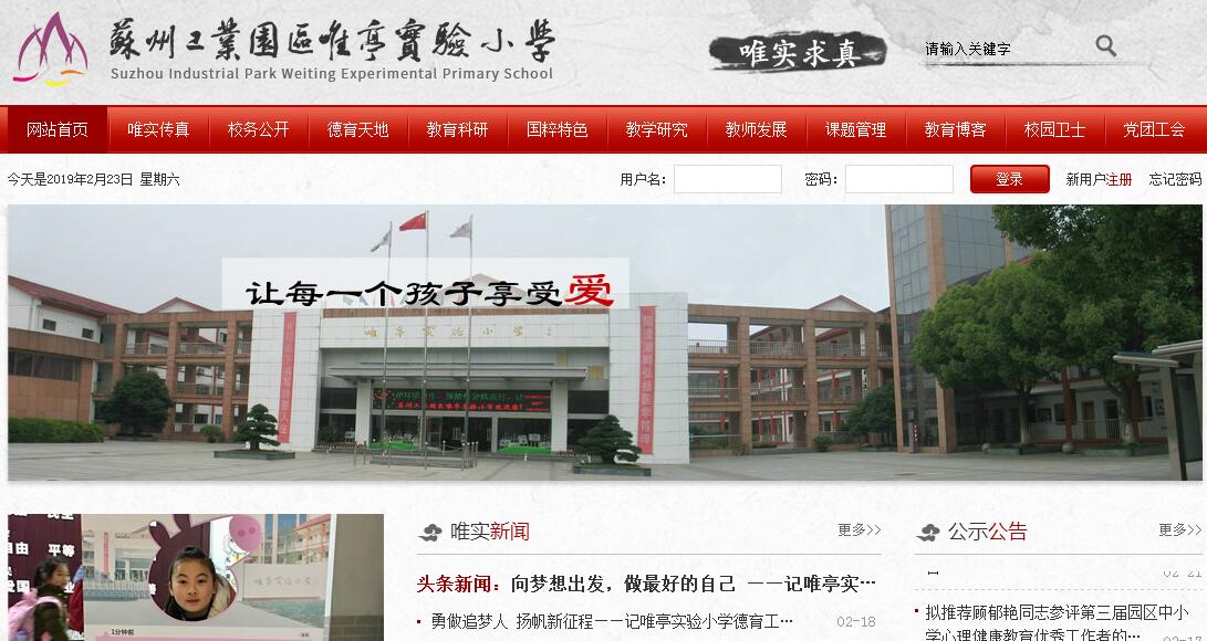 阳澄湖畔,草鞋山下,坐落着一所百年老校——苏州工业园区唯亭实验小学。学校始建于1906年,借园区高速发展之东风,于2003年搬迁至占地44000平方米的新址,并于2013年按照江苏省中小学教育技术装备标准Ⅰ类实施改扩建工程,百年老校重新焕发勃勃生机。学校本着“让每一个孩子享受爱与智慧的品质教育”的办学理念,以“唯实 求真”为校训,全心追求办学的美好愿景:让每一个孩子成为——人格健全,适应现代社会的快乐少年;知书达礼,具有传统文化气质的美德少年;奋发向上,爱学习、会学习的智慧少年。1998年至今,学校坚持培育书法特色,书法写字教育已成为学校办学的一张亮丽名片。学校先后获得“中国教育学会书法教育示范学校”、“中国书法(写字)特色学校”、“中国特色教育示范基地”、“江苏省中小学书法特色学校”、“苏州工业园区特色学校AAA级”等荣誉称号,同时,成为江苏省硬笔书法家协会实验基地、苏州市书法家协会教育基地。学校连续两次荣获江苏省书法写字教育先进集体。在江苏省教育厅组织评选的2013年教学成果奖评比(四年一评)中,我校的《深化校园书法写字特色的研究与实践》申报项目获得了基础教育类二等奖。2013年9月,学校国粹艺术传承中心正式成立,拓展和延伸了原有的办学特色,成立了软笔书法、硬笔书法、国画、篆刻、剪纸、拓碑、扇艺、苏绣、吴方言、诗词楹联、国学(德善书院之“唯亭学堂”)、评弹、象棋、围棋、武术、珠算、古筝等16个种类三十几个学生社团。2016年,以“传承国粹艺术,培育德慧少年”为主题的课程规划正式开始实施。学校现有三千五百名学生,72个教学班,一百九十名专任教师,其中本科及以上学历达百分之九十九,研究生学历达百分之十二,区级以上骨干教师达百分之三十左右。在苏州市教育局“三会”精神的引领下,学校每年举办校园艺术节、科技节、阳光快乐运动会、双语节、读书节、书法节以及丰富多彩的主题教育活动和综合实践活动,促进学生健康快乐地发展,大力推进素质教育的实施。2003年,学校顺利通过江苏省实验小学验收,并先后获得“全国教育科研先进单位”、“江苏省文明单位”、“江苏省绿色学校”、“江苏省标兵红旗大队”、“江苏省健康促进学校银牌”、“苏州市常规管理示范学校”、“苏州市教育现代化学校”、“苏州市特色文化学校”、“苏州市信息化示范学校”、“苏州市德育示范学校”、“苏州市语言文字规范化示范校”、“苏州市义务教育学校管理标准试点学校”、“苏州市武术推广先进单位”、“苏州市体育传统项目校(武术)”、“苏州市家庭教育课程项目学校”、“苏州工业园区青少年科技教育特色学校”等荣誉称号。脚踏实地,仰望星空,唯亭实验小学正朝着特色鲜明、内涵丰富、社会知名、人民满意的办学目标大步前行!