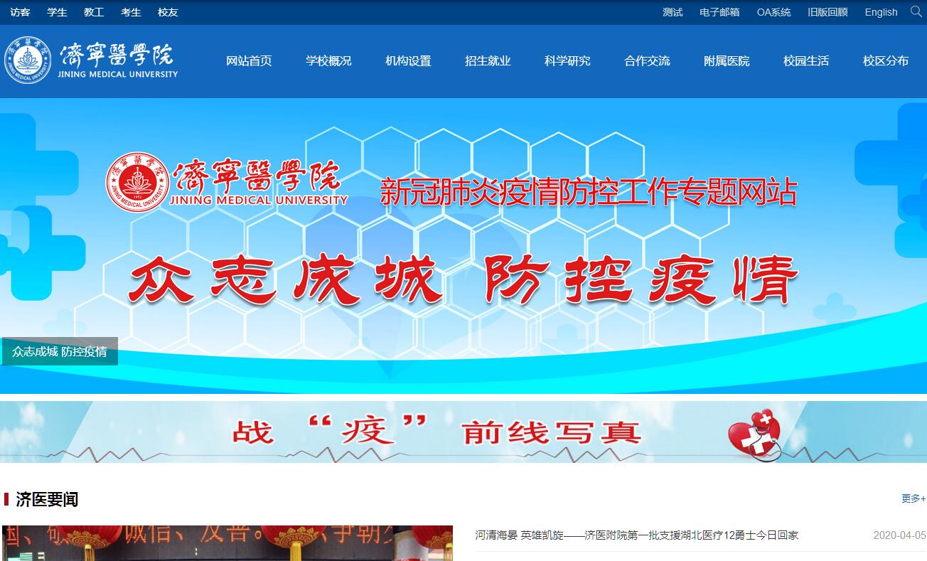 济宁医学院创建于1952年,是山东省属普通本科高等医科院校。学校现有济宁太白湖校区、任城校区和日照校区,占地总面积115万平方米,建筑面积67万平方米,与济宁国家高新区共建教学科技园。学校固定资产总值17.3亿元,其中教学科研仪器设备总值1.9亿元,馆藏图书总量为360余万册。学校建有2所直属附属医院,16所非隶属附属医院,170余个实践教学基地,23家社区医学实践教学基地。济宁医学院附属医院为山东省区域医疗中心,固定资产总值20亿元,编制床位3100张,通过国际医院信息化(HIMSS)六级认证。附属山东省精神卫生中心为山东省唯一一家省级三级甲等精神卫生专科医院,编制床位750张。学校现有教职工6165人,其中专任教师1005人,高级职称教师461人。具有博士、硕士学位人员797人。有国家级和省级教学名师、优秀教师、“泰山学者”海外特聘专家、享受国务院政府特殊津贴专家、劳动模范、五一劳动奖章获得者、有突出贡献的中青年专家等90余人;有中华医学会行为医学分会主任委员、中国行为医学领域首席科学传播专家、“国际行为医学会终身成就奖”获得者、山东省法医专业委员会主任委员、山东省医学会行为医学分会主任委员、教育部教学指导委员会委员等8人;有博士、硕士研究生导师140余人。学校面向全国28个省(市、区)招生。现有全日制在校生16569人。普通本专科毕业生就业率保持在96 %以上,研究生考取率位于同类院校前列。学校有基础医学院、临床医学院等19个教学单位,开设临床医学、预防医学、法医学等37个本专科专业和专业方向,已形成以医学教育为主体,涵盖医、理、工、管、文五个学科门类,本科教育、研究生教育、继续教育、留学生教育、中外合作办学协调发展的多层次办学格局。学校有国家级特色专业建设点、综合改革试点项目、卓越医生教育培养计划4项;省级特色专业、应用型人才培养专业发展支持计划项目、高水平应用型重点建设专业、卓越工程师教育培养计划等项目12项;有省级重点学科和重点实验室、人才培养模式创新实验区、教学团队等23个;有国家级精品课程、精品资源共享课、省级精品课程等32门;拥有临床医学硕士专业学位授权点。近五年,承担科研项目1180项,其中国家级项目40项,省部级项目122项,厅局级项目212项;科研成果获省部级5项,获厅局级奖励129项;出版专著283部,教材43部;发表论文2131篇,其中被SCI等收录论文187篇;鉴定成果354项,获专利209项。中华医学会行为医学分会和山东省行为医学专业委员会挂靠学校,主办《中华行为医学与脑科学杂志》《中华诊断学电子杂志》《精神医学杂志》和《济宁医学院学报》,均向国内外公开发行。《中华行为医学与脑科学杂志》为中国权威学术期刊,名列基础医学类期刊第一名,并入选“中国科协精品科技期刊工程项目”。学校坚持“为国家育人才,为大众谋健康”的办学宗旨,秉承“明德、仁爱、博学、至善”的校训,弘扬“求精、求是”的校风,薪火相传,矢志不渝,不懈奋斗,形成了“诲人不倦”的教风和“学而不厌”的学风。紧紧围绕建设“特色鲜明、国内知名的应用型现代医药科技大学”的宏伟目标,致力于培养“品德高尚、业务精湛、身心健康”的应用型人才,为国家和社会输送了大批专门人才。