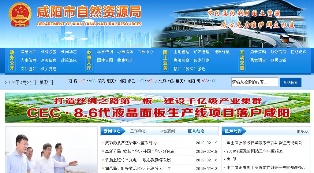咸阳市自然资源局主要职责:1、贯彻执行土地资源、矿产资源法律、法规和规章;研究草拟管理、保护与合理利用土地资源、矿产资源的规范性文件;组织实施全市土地资源、矿产资源管理的技术标准、规程、规范和办法;负责有关行政处罚的听证和行政复议。 2、组织编制和实施全市国土资源规划、土地利用总体规划和国土资源其它专项规划、年度计划;参与报省审批的城镇总体规划的审核;指导、审核县乡土地利用总体规划和矿产资源规划;组织矿产资源的调查评价,编制矿产资源保护与合理利用规划、地质勘查规划、地质灾害防治和地质遗迹保护规划;组织开展国土资源有关科学技术研究和对外合作交流。3、监督检查县级国土资源主管部门行政执法和土地、矿产规划执行情况;依法保护土地、矿产资源所有者和使用者的合法权益,调处重大权属纠纷,查处重大违法案件。4、制定全市地籍管理办法并组织实施;组织土地资源和地籍调查、土地统计和动态监测;组织实施土地确权、城乡地籍、土地定级、土地登记发证等工作。 5、制定全市土地使用权划拨、出让、租赁、作价出资、转让等办法和乡(镇)、村用地管理办法并组织实施;指导农村集体非农土地使用权的流转管理;指导基准地价、标定地价评测;审核土地评估机构资格,确定土地使用权价格。6、负责城市规划区内土地的统一管理工作;承担国家重点建设项目用地的统一征地管理工作。7、制定全市耕地特殊保护与鼓励耕地开发政策、措施,组织实施土地用途管制和基本农田保护;负责编制全市土地复垦规划和计划,抓好全市未利用土地开发、土地整理、土地复垦工作,确保全市耕地面积占补平衡;承办由省、市政府审批的建设用地的审查、报批工作。8、拟定地质勘查、矿产资源开发、利用和保护监督管理办法并组织实施;依法管理探矿权、采矿权(探矿权和采矿权合称矿业权,下同)授予出让和转让,保护合法矿业权;按照市水资源管理部门核发的取水许可证和核定的开采量,负责全市用于商业经营开采矿泉水、地热水的企事业单位办理采矿许可证的审核及管理工作,并依法收取采矿权使用费和矿产资源补偿费;依法实施地质勘查行业管理,审查上报地质勘查成果;按照规定监督管理矿业权评估机构,确认矿业权评估结果;按照规定组织对矿产资源补偿费的征收。9、承担全市矿产资源储量管理工作,管理全市地质资料的汇总,指导技术资料管理业务;组织开展全市矿产资源供需形势分析、研究拟订全市矿产资源政策和发展战略。10、制定全市地质环境保护、地质灾害防治管理办法并组织实施;组织监测、防治地质灾害和保护地质遗迹;依法监督管理水文地质、工程地质、环境地质勘查和水质评价工作;参与地下水动态监测;保护地质环境;保护具有重要价值的地质遗迹保护区;指导地质灾害监测、评价和预报,组织协调重大地质灾害的防治。