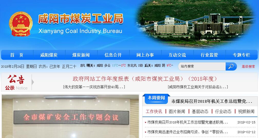 | 网站简介: 根据《中共陕西省委办公厅陕西省人民政府办公厅关于印发<咸阳市人民政府职能转变和机构改革方案>的通知》(陕办字〔2015〕46号),设立市煤炭工业局,为市政府直属事业机构。 |