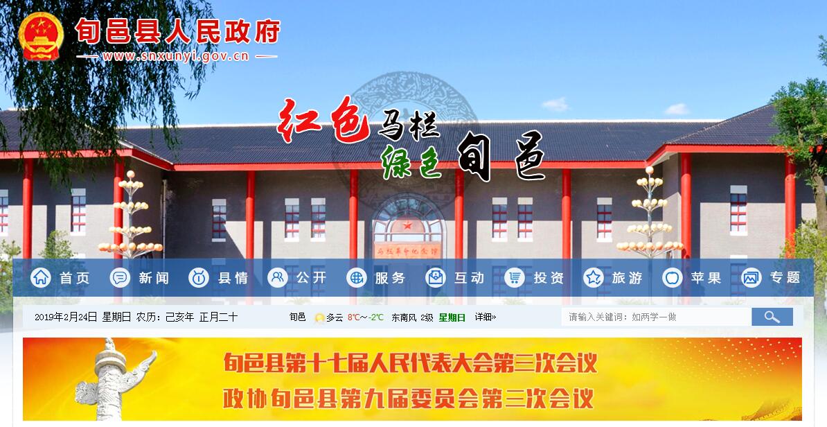 旬邑县地处渭北黄土高原沟壑区,位于陕西省中部、咸阳市北部。全县总面积1811平方公里,总人口29.1万人。共辖9镇、1个街道办——湫坡头镇、职田镇、张洪镇、郑家镇、清塬镇、底庙镇、土桥镇、马栏镇、太村镇和城关街道办。全县共有179个行政村。旬邑是一块古老的土地。古称豳,秦封邑,汉置县。周人先祖后稷四世孙公刘曾在此开疆立国,开创了古代农耕文明。出土的200-300多万年前的剑齿象化石和板齿犀牛化石,为世界之最,距今两千多年前的秦第二大国防工程—秦直道穿境而过,道路兵站遗址至今犹存。旬邑是一块红色的土地。1926年建立了党组织,1928年爆发了声震渭北的“二八”起义,革命战争年代是陕甘宁边区的南大门、关中分区和陕北公学所在地,习仲勋、汪锋、贾拓夫、李维汉、张德生、赵佰平、王世泰等老一辈无产阶级革命家在此长期生活和战斗过。旬邑是一块富饶的土地。自然资源储量丰富,煤炭储量达27亿吨,石油贮量2800万吨,药材192种,沙棘20万亩,草场46万亩,国有森林面积150万亩,木材总蓄积量430万立方米。石门山被誉为“渭北高原上的西双版纳”,是极好的自然风景旅游区。旬邑是一块文化积淀深厚的土地。这里曾经是被《诗经》所反复吟唱的古豳之地。如今这里是“中国现代民间绘画画乡”和“中国民间剪纸之乡”,以“剪花娘子”民间艺术大师库淑兰的作品为代表的剪纸艺术驰名海内外。旬邑是一块充满无限生机与活力的发展热土。这里民风淳朴,交通便利,社会稳定,信息畅通,环境优美,城镇基础设施完善,投资政策优惠,发展条件优越,是客商投资的热土,创业的圣地,发展前景十分广阔。近年来,我们坚持以科学发展观为指导,全面贯彻落实党的十八大、十八届三中、四中、五中、六中全会和中省市决策部署,全力以赴保增长、强基础,抓改革、调结构,惠民生、促和谐,全县经济社会步入了科学发展、跨越发展、和谐发展的新时期。先后荣获全国绿色小康县、中国果菜无公害十强县、中国优质苹果基地重点县、全国苹果20强县、全国绿化模范县、国家卫生县城、全国生态文明先进县、全国科技进步先进县、全国科普示范县、省级园林城市、省级文明县城、陕西省造林绿化模范先进县、陕西省农村公路建设先进县、陕西省建设社会主义新农村“十大红旗”单位、全省农村社区建设先进县、全省扶贫绩效考核优秀县(区)、陕西省2017年电子商务进农村综合示范县、省级森林城市、中国天然氧吧、国家园林县城、陕西省诗词之乡。