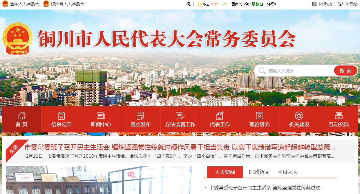 | 网站简介: 铜川市人民代表大会是铜川市的地方权力机关。市人大及其常委会选举产生以来,认真履行宪法和组织法赋予的各项职权,积极开展工作,坚持以经济建设为中心,紧紧围绕全市工作大局,认真审议、决定重大事项,先后审议、批准了第六至第十个五年计划,审查批准了各年度国民经济和社会发展计划以及财政、决算等。同时,积极探索和改进监督方式,依法做好选举和人事任免工作,不断加强和改进代表工作,逐步建立和完善工作机制,不断提高常委会审议、决策水平,充分发挥地方国家权力机关的作用,为促进铜川经济发展和社会进步做出了应有贡献。 |