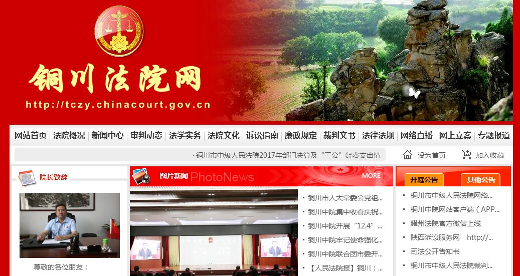 铜川市中级人民法院位于铜川新区长虹路北段,现辖耀州区法院、王益区法院、印台区法院、宜君县法院四个基层人民法院、新区审判庭和13个基层人民法庭。铜川中院内设机构19个,其中业务部门11个即立案庭(信访工作办公室)、刑事审判第一庭、刑事审判第二庭、民事审判第一庭、民事审判第二庭、民事审判第三庭、行政审判庭(赔偿委员会办公室)、审判监督庭、执行工作局(下设执行一庭、执行二庭)、研究室(司法统计科)、司法技术室,行政综合部门8个即办公室、政治部(下设组织人事处、宣传教育处、综合处)、审判管理办公室、司法警察支队、监察室、警务科、警政科、法警直属大队。铜川中院共有干警90人,党员73人,占81%,研究生4人,占4%,本科70人,占78%,大专及以下18人,占18%。党组成员由7人组成,其中党组书记、院长1人,党组副书记、副院长1人,副院长2人,纪检组长、政治部主任执行局局长各1人。陕西省铜川市中级人民法院是国家审判机关,依照法律规定独立行使审判权,对铜川市人民代表大会及其常委会负责并报告工作。其主要职责如下: 1.依法审判由市中级人民法院管辖的第一审刑事、民事、行政案件和法律规定的其他案件。 2.审判法律规定的由市中级人民法院审理的刑事、民事、行政等二审案件和抗诉案件。 3.依法审理国家赔偿案件和行政赔偿案件。 4.统一管理和协调全市法院的执行工作,负责执行本院一审民事、行政案件的生效法律文书及法律规定应当由市中级人民法院执行的其它生效法律文书。 5.受理本院终审和下级人民法院复查的申诉、申请再审案件。 6.对下级人民法院管辖不明确的案件指定管辖。 7.监督、指导下级人民法院的审判工作。 8.针对案件审理中发现的问题提出司法建议;参与社会治安综合治理。 9.总结法院审判工作经验,解答下级法院请示的有关适用法律政策方面的问题。 10.根据审判工作需要进行司法技术鉴定。 11.指导全市法院系统的思想政治工作和队伍建设,协助地方党委管理下级法院的领导班子,协助市上主管部门管理机构编制工作;负责全市法院系统法官等级评定申报工作和全市法院法警警衔评授申报工作;负责全市法院宣传教育和培训工作。 12.检查和监督本院及下级法院执法执纪情况,进行法制宣传和廉政教育。 13.负责全市法院系统的物质装备和有关经费的管理工作及“两庭”建设工作。14.负责法警管理工作。 15.承办其他应由市中级人民法院负责的工作。