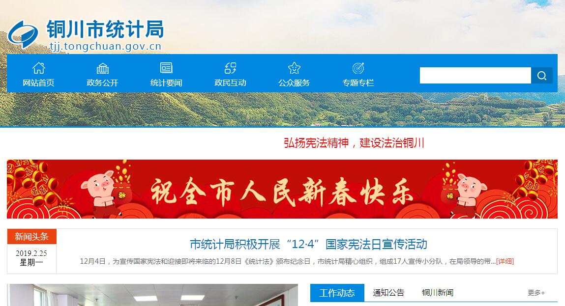 铜川市统计局主要职责:(一)拟定全市统计改革和统计现代化规划以及全市统计调查计划,组织和监督全市统计和国民经济核算工作,监督检查统计法律、法规的实施。(二)建立健全全市国民经济核算体系和统计指标体系,贯彻全国统一的基本报表制度;组织管理全市统计调查项目,制定全市统计调查方案,指导和协调市内中、省属和地方单位的统计工作。(三)会同或协同有关部门组织实施国家、省重大的国情国力普查、抽样调查、专项调查计划和全市的经济社会调查;汇总整理全市的基本统计资料;对全市国民经济、科技进步和社会发展等情况进行统计分析研究、统计预测和统计监督;开展统计分析及统计咨询服务,为全市制定计划、宏观管理等提供定量定性的决策依据。(四)审查市级有关部门的统计调查计划及调查方案,管理全市统计调查表;统一检查、审定、管理、公布全市性的基本统计资料,定期公布全市国民经济和社会发展情况的统计信息。(五)建立健全和管理市统计信息自动化系统和统计数据库体系;组织、推广计算机及传输技术在全市统计工作中的运用。(六)按照规定的权限与责任,管理两县调查机构的编制、统计事业费和部分主要负责干部;组织指导统计干部教育培训和 业务考核工作,参与对市级各部门、各县区经济目标责任制的检查、考评工作。(七)开展统计研究工作和统计科学的交流研讨工作。(八)承办市政府交办的其他事项。