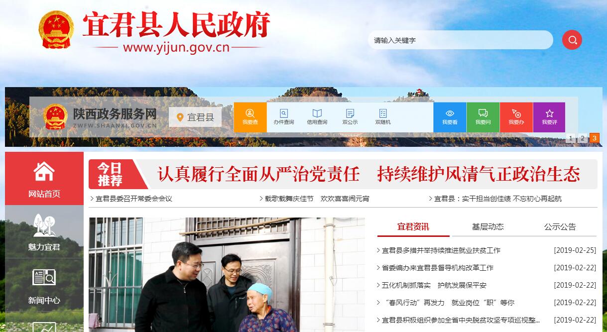 宜君县位于关中平原与陕北黄土高原的结合部,既因宜君水而得名,又因适宜君王避暑而称谓。县域总面积1531平方公里,辖6镇1乡1个街道办事处、117个行政村,总人口约10万,其中农业人口7.9万,是国家扶贫开发工作重点县。县城南距省会西安120公里,北距轩辕黄帝陵27公里,210国道和包茂高速穿境而过,是关中通往陕北的一道绿色屏障。宜君文化底蕴丰厚,境内有仰韶文化遗址、彭祖故里、北魏石窟群、姜女泪泉、云梦山道教胜地、战国魏长城等,其中宜君战国魏长城被列入世界文化遗产中国长城名录。宜君土地宽广,人均25亩,综合开发和利用的潜力巨大。境内地形地貌类型多样,山、川、梁、峁、塬、沟、谷并存,平均海拔1395米。宜君生态优美,林业用地面积152.9万亩,森林面积112.1万亩,活立木蓄积182万立方米,森林覆盖率50.1%,植被覆盖率91.8%,是秦岭以北最大的一块绿洲。宜君气候宜人,年均降水量709.3mm,年平均气温8.9℃,特别是夏季平均气温只有19℃,具有发展生态避暑旅游产业得天独厚的条件。宜君矿产丰富,已探明有煤炭、铁矿石、石油、高岭土、天然气、油页岩、石灰石等近10种,其中煤炭总储量达到4500万吨、石油探测储量1.06亿吨。宜君动植物资源丰富,有国家二级保护植物野大豆、省级重点保护植物杜松等高植物106科860余种,党参、连翘、刺五加等野生药用植物172种,有陆生脊椎动物22目58科150余种,国家一级保护动物黑鹳40余只。宜君农产品丰富,基本形成了以全县玉米、塬区苹果、山区核桃为主要特点的旱作特色农业板块经济格局。宜君县多次被农业部确定为玉米高产创建项目示范县,玉米种植面积已达36.7万亩,其中地膜玉米10万亩,哭泉镇旱作梯田入选“中国美丽田园”,是名副其实的陕西地膜玉米第一县,有10余种农产品通过国家绿色无公害产品认证。宜君苹果“个大形正、色艳味浓、营养丰富、绿色安全”,先后25次荣获国优、省优产品称号,“怡君牌”红富士苹果通过了国家绿色食品发展中心A级质量认证,并获得省级无公害农产品(苹果)产地认证和绿色果品认证,在2011—2015年中国•陕西(洛川)国际苹果博览会上,宜君苹果共收揽金奖6项、银奖21项,获奖数位居全省前茅,产品畅销东南沿海二十多个大中城市和港澳地区,在越南、缅甸、泰国、俄罗斯等国家也倍受青睐。苹果总面积已达到26.95万亩,挂果面积14.7万亩,产量18.6万吨,优果率84%以上,产值约6亿元,果区农民人均苹果收入达到万元以上。核桃面积达到了42万亩,位居陕西省前列,其中挂果面积13万亩,2014年产值突破2.8亿元,农民人均核桃收入达到3000元,9月份被中国经济林协会正式命名为“中国核桃之乡”。今日的宜君已步入了加快转型、提速发展的关键时期,农业产业化、县域工业化和城乡一体化迈出了有力步伐。截止“十二五”末,地区生产总值、全社会固定资产投资、社会消费品零售总额、地方财政收入分别完成32.53亿元、39.09亿元、6.91亿元和2.23亿元,分别是“十一五”末的2.4倍、4.1倍、2.5倍和3.3倍,均实现了每年两位数的增速,在全省县域经济综合考核中排名第36位,实现了五年17进位。城镇居民人均可支配收入28014元,农民人均纯收入9542元。 农业增加值完成6.31亿元,规模以上工业增加值17.02亿元,服务业增加值6.92亿元,分别是“十一五”末的1.6倍、3.9倍和2.1倍,三次产业结构由28.2:47.2:24.6调整到 18.5:60.2:21.3。宜君县先后荣获“中国核桃之乡”“国家卫生县城”“全国科技进步先进县”“全国平安建设先进县”“全国绿化模范县”“全国法制宣传教育先进县”“国家级生态示范区”“全国计划生育优质服务先进县”“全省平安建设示范县” “省级文明县城”“国家园林县城”“陕西省义务教育均衡发展合格县”“省级医药卫生体制改革工作先进县”等荣誉称号,连续五届荣获“全国科技进步先进县”,连续六年荣获“全省平安建设先进县”称号。福山福水福地,宜我宜他宜君。勤劳朴实的宜君人民热忱欢迎各界人士来宜观光考察,投资兴业,共谋发展!充满希望的宜君将以更加开阔的胸襟、更加务实的作风、更加有力的举措、更加周到的服务、更加完善的政策、更加积极的态度为您大展宏图提供必要的条件和便利。