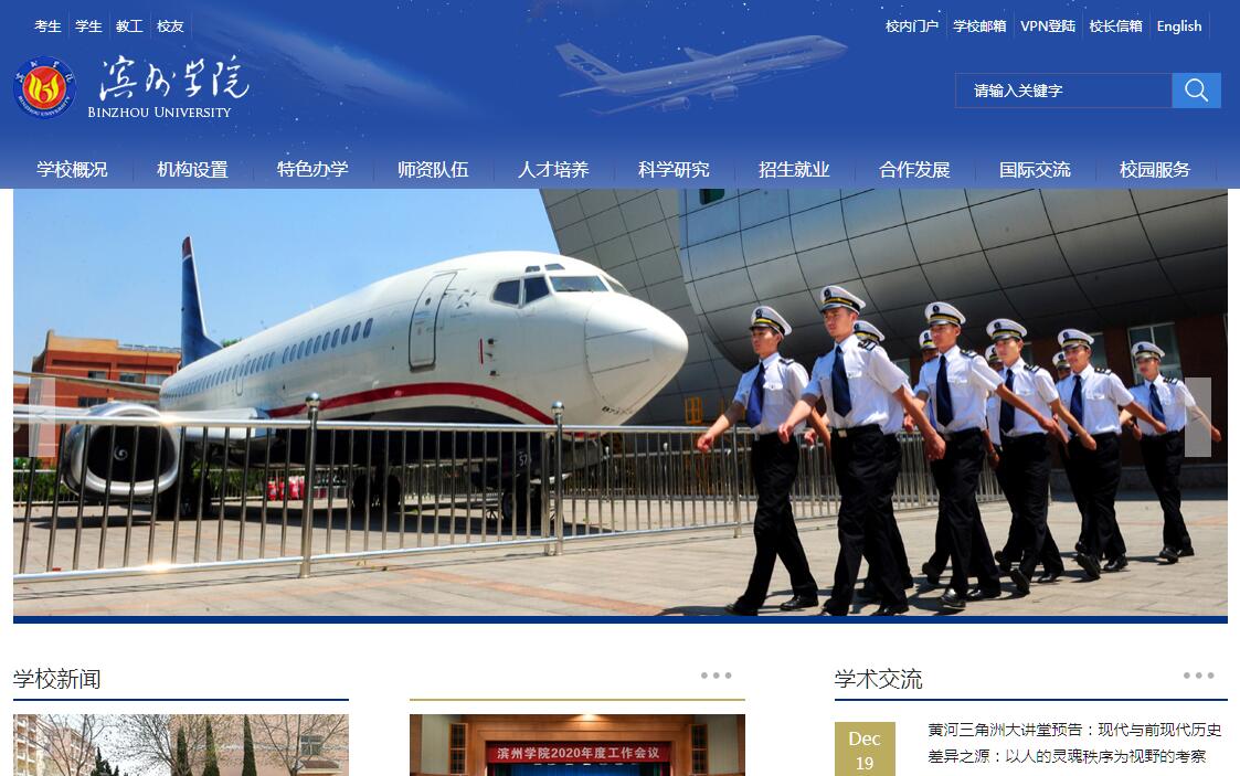 滨州学院是一所省属全日制综合性普通本科院校,坐落在中国古代著名军事家“兵圣”孙武的故乡、渤海之滨、富饶美丽的黄河三角洲腹地现代生态园林型城市——滨州市。学校党委、行政团结带领全校师生员工,坚持以马克思列宁主义、毛泽东思想、邓小平理论、“三个代表”重要思想、科学发展观、习近平新时代中国特色社会主义思想为指导,围绕建设以航空为主要特色的高水平应用型大学的办学定位,大力实施质量立校、人才强校、特色兴校、开放活校、和谐治校“五大战略”,学校各项事业蓬勃发展。校园占地1970亩,校舍建筑面积61.37万平方米,固定资产总值14.6亿元。设有23个实验中心(室),其中2个为省级实验教学示范中心;教学科研仪器设备总值1.96亿元。图书馆纸质图书169.8万册,电子图书112万册,中外文纸质期刊1800余种,电子期刊29293种,拥有电子文献数据库32个。面向全国30个省(市、自治区)招生,全日制普通在校生20000余人,继续教育(远程教育)在校生20000余人。学校坚持质量立校,以立德树人为根本任务,主动适应行业和区域经济社会发展需求,调整优化学科专业结构,初步形成了以工为主,工、理、经、管、文、教、艺术等学科专业相互支撑、协调发展的专业结构;实施“品牌专业建设计划”“应用型专业群实训中心建设工程”,深化校企合作、产教融合,培养基础实、能力强、素质高、适应快,具有健全人格和社会责任感、具备专业技能和创新创业能力的应用型高级专门人才。设有19个二级学院,58个本科专业、29个专科专业;建有1个国家级“本科教学工程”综合改革试点本科专业、1个国家级大学生校外实践教育基地、2个省级应用型专业发展支持计划项目、4个省级高水平应用型立项建设专业(群)、3个山东省职业院校与本科高校对口贯通分段培养试点专业、2个省级人才培养模式创新实验区、8个省级特色专业、38门省级精品课程。非英语专业毕业生英语四、六级通过率分别高达90%、40%,专科生升本率超过30%,本科生考研升学率达到43.6%,毕业生初次就业率达到97.52%,学校连续3年被评为山东省最具就业竞争力的本科高校。2012—2017年连续获批“国家级大学生创新创业训练计划”实施单位,获得立项374项,立项数量位居全省高校前列;学生参加大学生学科竞赛、大学生研究训练计划等,获国家级项目和奖励1577项、省部级项目和奖励2485余项,发表学术论文和作品800余篇,取得专利授权150余项。国内权威机构麦可思公司调查显示,我校毕业生毕业半年后非失业率稳定且高于全国非“211”本科院校平均值,毕业生对母校推荐度和满意度评价均高于全国非“211”本科院校平均值。大力开展教师教育,2012年被批准为山东省第二批省级教师教育基地。与中国科学院、山东大学等25家单位联合培养硕士研究生,是山东省教育厅批准的研究生联合培养基地。学校重视科学研究,实施“一流学科建设计划”“1355科技创新工程”,不断强化优势特色,提高科技创新能力。建有2个省级重点学科、4个省文化艺术科学重点学科。建有校级科研机构18个,拥有1个国家级科普教育基地、9个省部级重点实验室(研究中心、基地)、5个省级(社)科普教育基地、5个省高校重点实验室(基地)和26个市厅级创新平台。承担国家级课题55项、省部级课题428项;获得专利授权625项,取得鉴定成果76项;获省部级以上科研成果奖50项、市厅级2236项。发表学术论文6300余篇,其中SCI、SSCI、EI、CSSCI收录580篇;出版学术著作180部。《滨州学院学报》被评为“全国地方高校名刊”,“孙子研究”栏目入选教育部“名栏建设工程”。学校积极服务社会和行业,主动对接“一带一路”“两区两圈”和“民航强国”等发展战略,制定实施《服务黄河三角洲行动计划(2016-2020年)》《服务航空业行动计划(2016-2020年)》,与山东社会科学院、滨州市政府、青岛科技大学、山东理工大学、山东科技大学、青岛国际机场、济南机场等签订战略合作协议。建有黄河三角洲高效生态经济发展研究院等一批服务区域、行业发展的创新平台,与地方政府、企业、行业签订合作协议100余项,合作项目637项,服务经费1000余万元;与地方、行业联合培养培训各类急需人才35000余名。学校坚持引育并举,实施“三百工程”“黄河英才工程”“1121人才工程”“聚英计划”,大力加强人才队伍建设。现有专任教师1002人,其中,博士生导师2人、硕士生导师34人,教授、副教授330人,博士、硕士899人;有国家“千人计划”特聘教授1人、国务院政府特殊津贴获得者1人、全国社科普及专家1人、“黄河英才”特聘教授5人,山东省有突出贡献的中青年专家1人、省级优秀教学团队4个、省级教学名师7人、省级优秀教师6人、山东省高校首席专家2人。有双师型教师223人,聘请8名院士担任学校名誉院长、顾问或客座教授,聘任兼职教授和具有丰富实践经验的兼职教师158人。学校坚持走特色办学之路,精心打造飞行技术和黄河三角洲生态、黄河三角洲文化、孙子文化研究等特色品牌。围绕服务我国民航事业,2006年设置了飞行技术专业,组建了飞行学院,成为全国第一家培养飞行员的地方普通本科院校;现有飞行学院、航空工程学院、机场学院、乘务学院等4个航空类学院,45个专业(方向)面向航空领域培养人才;先后与中国国际货运航空公司、山东航空股份有限公司、海