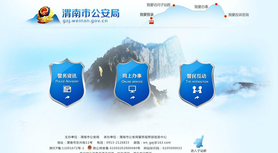 渭南市公安局主要职责:(一)贯彻执行党和国家有关公安工作的方针、政策、法律、法规和区委、区政府、上级公安机关的指示,指导全区公安工作。(二)掌握全区公安工作情况和有关信息,综合分析影响稳定、危害国内安全和社会治安情况,研究新形势下出现的新情况、新问题,提出对策措施。(三)负责对危害国家安全案件的侦察,对境内外敌对势力、反动社团、黑社会组织等的侦控和基础调查工作。(四)主管全区各类刑事案件、经济案件的侦查和禁毒、缉毒等工作。(五)指导全区国家机关、社会团体、企事业单位的安全保卫工作,指导企事业单位保卫组织的建设,负责经济民警队伍的管理。(六)主管并指导全区公安机关的安全防范工作,依法管理户籍、居民身份证、枪支弹药、危险物品和特种行业,组织、协调对重、特大治安事件和突发性事件的处置工作。管理集会、游行、示威活动。(七)组织实施对来本区的党和国家领导人、重要外宾以及重要会议、大型活动的安全警卫工作,负责对全区公安机关警卫业务的指导。(八)主管全区出入境工作。(九)主管全区城乡道路交通安全,处理交通事故,维护交通秩序,组织实施对车辆和驾驶员的管理等,负责本区 辖区国道和省道的交通管理工作。(十)主管看守所、治安拘留所的管理工作。(十一)负责全区内河水上治安管理。(十二)负责全区消防管理工作,依法进行消防监督。(十三)组织实施全区公安科技工作;规划全区公安信息技术、刑事技术建设;负责全区技术防范工作和社会公共安全产品的管理。(十四)负责对全区的国际互联网、计算机专用安全产品、重要单位的计算机信息系统安全、申办网吧等的管理,依法查处涉及计算机系统的违法犯罪案件。(十五)管理全区公安机关经费、通讯、装备、被装等保障工作。(十六)负责全区公安队伍建设、民警教育训练和宣传等工作。(十七)分析队伍状况,研究制订全区公安队伍监督管理的规章制度;负责警务督察;监督全区公安机关执法活动;查处违纪案件。(十八)承办区委、区政府和上级公安机关交办的其他事项。