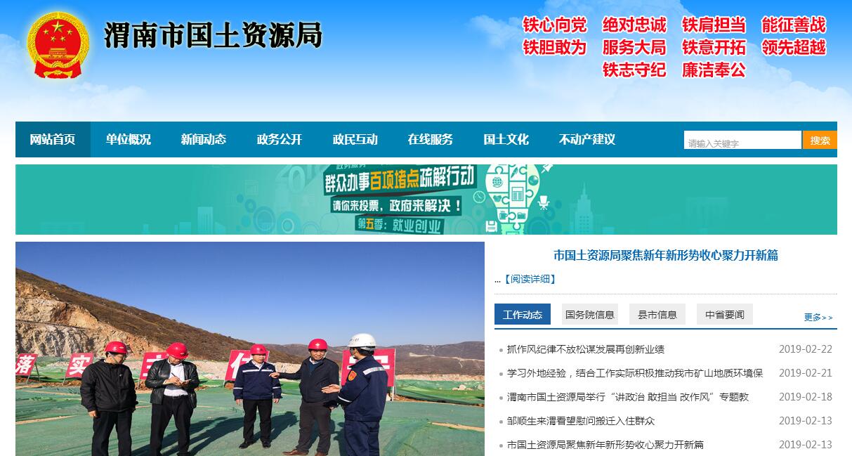 根据《中共渭南市委办公室、渭南市人民政府办公室关于印发<渭南市人民政府职能转变和机构改革方案>的通知》,组建渭南市国土资源局(加挂渭南市不动产登记局牌子),为市政府工作部门。主要职责是:(一)承担“两法一条例”及规章宣传贯彻执行的职责。负责对《中华人民共和国土地管理法》、《中华人民共和国矿产资源管理法》和《地质灾害防治条例》及法规规章的宣传、贯彻、执行,结合国土资源管理形势,研究制定有针对性的全市土地、矿产、地质灾害等管理工作的意见、办法、决定、预案等规范性文件并贯彻落实。(二)承担保护与合理利用土地资源、矿产资源等自然资源的职责。贯彻执行国家国土资源发展规划和战略,编制实施全市土地、矿产资源保护与利用规划、地质灾害防治规划以及其他有关的专项规划并监督检查规划执行情况,指导县级土地利用总体规划、矿产资源规划和地质灾害防治、矿山环境保护规划等规划修编。(三)承担优化配置国土资源的职责。开展全市国土资源经济形势分析,优化配置资源,贯彻落实国土资源领域节约集约利用的政策措施,编制和实施土地利用年度计划,负责全市项目建设用地的预审、上报、转批、征用、供应工作。(四)承担规范国土资源管理秩序的职责。监督检查全市国土资源管理法律法规规章及有关规范性文件的执行情况,依法保护土地、矿产资源所有者和使用者的合法权益,强化执法监察,调查处理国土资源重大违法违规案件。(五)承担耕地和基本农田特殊保护职责。落实最严格的土地用途管制制度、耕地和基本农田保护政策,组织实施土地开发整治工作,实现耕地面积占补平衡,确保规划确定的耕地保有量和基本农田面积不减少。(六)承担全市土地利用基础数据调查统计的职责。负责全市地籍管理工作,组织全市土地利用现状调查、地籍调查、地籍变更调查、土地统计汇总工作,负责全市土地分类定级、基准地价更新、标定地价备案的统一管理,建立土地利用基础数据库。(七)承担地质环境保护和地质灾害防治的职责。组织编制年度地质灾害防治方案,指导应急处置,组织、协调、指导和监督全市地质灾害防治工作,制订并组织实施重大地质灾害等国土资源突发事件应急预案,负责矿山地质环境治理项目的申报、指导、验收工作,保护地质环境和地质遗迹。(八)承担全市矿产资源开发利用管理职责。负责采矿权的变更、延续、登记发证及日常管理监督工作,负责探矿权的日常管理监督工作,负责全市矿产资源储量的动态管理监督工作,负责全市地热资源的规划及开发管理工作。(九)承担监督检查矿产资源法规执行情况的职责。依法维护矿产资源所有者、使用者的合法权益,负责全市矿山超层越界开采、非法开采等管理以及矿山地质灾害安全管理,查处各类违法案件,打击违法行为,依法承担矿业权争议纠纷的调处工作。(十)承担土地、矿产资源市场秩序的管理责任。负责土地使用权的出让、租赁、抵押、作价出资、作价入股、转让、交易、政府储备、土地收购的管理工作,负责全市经营性用地、采矿权、探矿权招、拍、挂统一管理工作,对项目用地的上报、预审、审批、供应、利用情况实行网络动态监测。(十一)承担全市不动产登记工作责任。负责指导监督全市土地登记、房屋登记、林地登记、草原登记等不动产登记工作,建立不动产登记制度,推进不动产登记信息基础平台建设,承担不动产产权争议调处,负责渭南市中心城市规划区内不动产登记发证工作,会同市林业局、农业局负责国有农场、林场的登记发证工作。(十二)承担渭南市中心城市规划区范围内的土地管理工作的责任。(十三)承办市政府交办的其他事项。